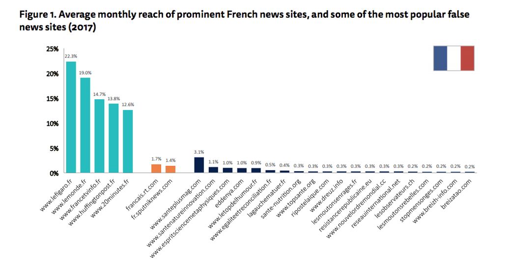Opvallend is dat de nepnieuws-sites maar een minuscuul marktaandeel en bereik hebben. RISJ stelt dat sites in 2017 gemiddeld 3,5 procent van de bevolking in de landen wist te bereiken. Het gros van de nepnieuwsverspreiders bereikt net 1 procent. De grootste nieuwssite in Frankrijk (Le Figaro) bereikt maandelijks 22,3 procent van de bevolking. In Italië bereikt La Repubblica zelfs 50,9 procent van de bevolking.