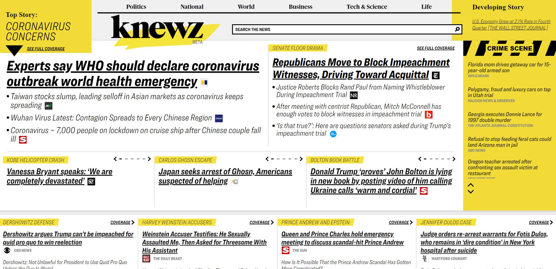 Knewz.com biedt koppen en korte samenvattingen van elk verhaal met een doorklik naar de eigen website van de publicatie.