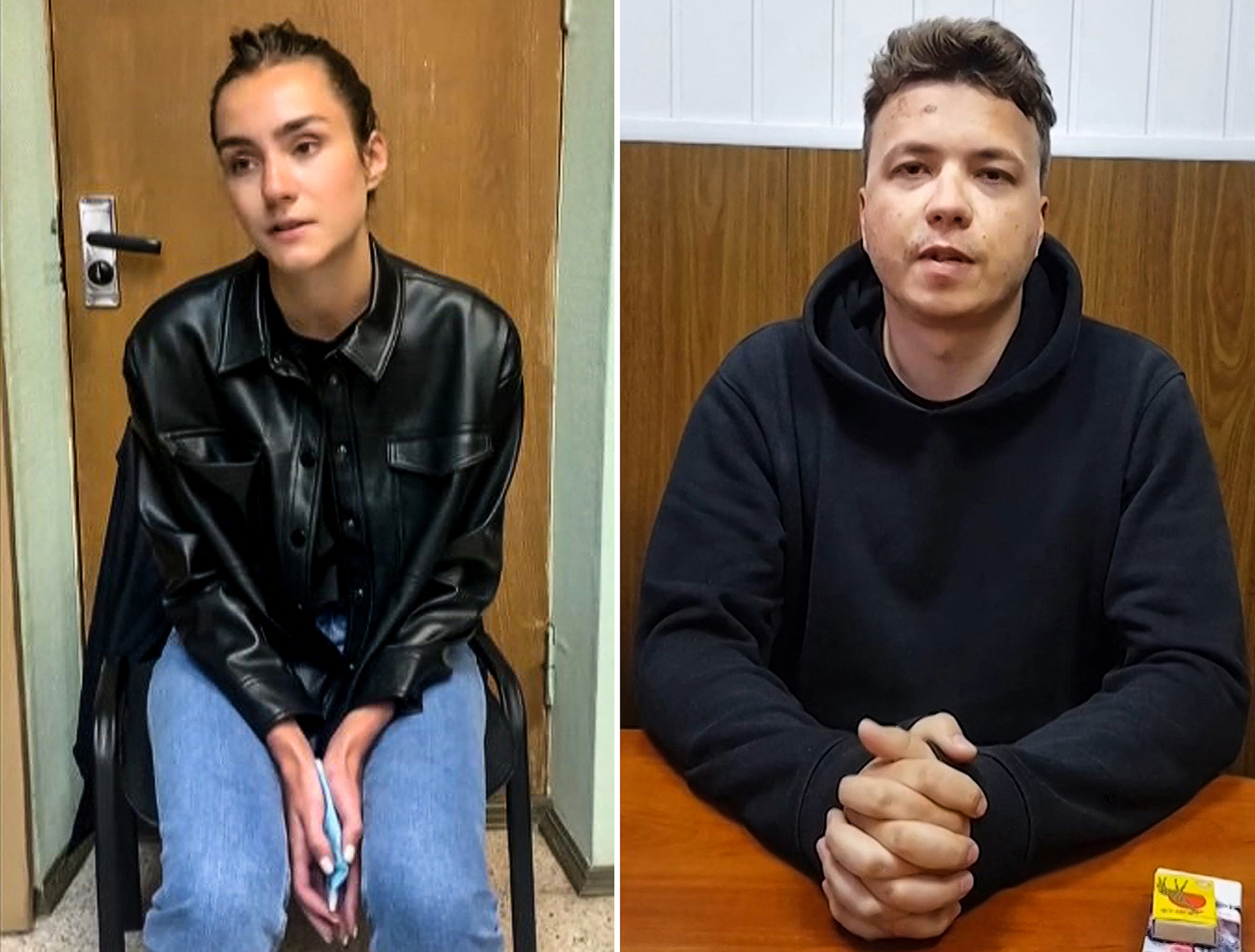 Kort na zijn omstreden aanhouding in Minsk werd Protasevitsj ook op televisie getoond. Zijn vriendin verscheen toen eveneens in een dergelijke’bekentenisvideo’.