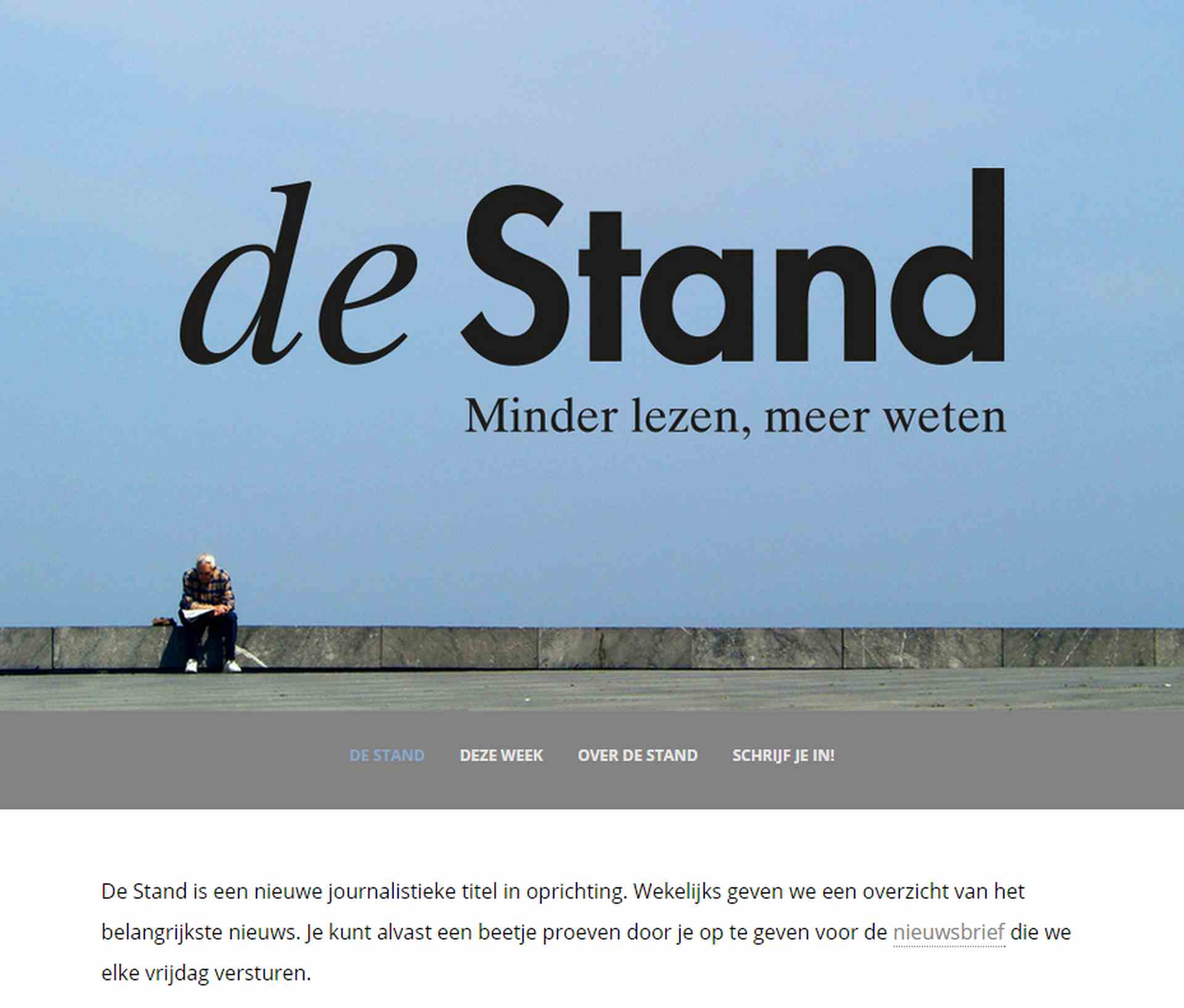 “Wij gaan de lezer elk weekend bijpraten over het nieuws van de voorbije week, met daarbij de nodige duiding. Daarbij filteren we de ruis, zoals die ebola-patiënt die toch geen ebola bleek te hebben. Onze slogan is dan ook ‘minder lezen, meer weten’.” De redactie oefent al enige weken met een online nieuwsbrief. “De nieuwsbrief heeft inmiddels honderden subscribers, dus we kunnen aantonen dat er vraag naar dit concept is. Bijvoorbeeld aan investeerders: zet maar in het artikel dat we die zoeken. Het geld dat we met ‘friendfunding’ ophaalden is inmiddels wel op.”