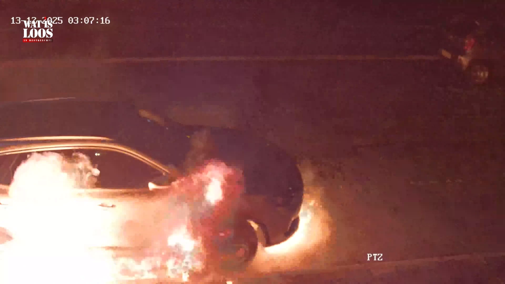 Op beelden is te zien dat twee personen op een fiets stoppen bij een auto van het medium en er daarna iets onder gooien, om vervolgens weg te fietsen. Even later volgt een explosie met een hoop vlammen. Welke schade de brandbom heeft veroorzaakt, is nog niet duidelijk. “Het is een half elektrische auto dus misschien is er iets met het accupakket. De buurman heeft het gelukkig snel kunnen blussen”, zegt De Vries.