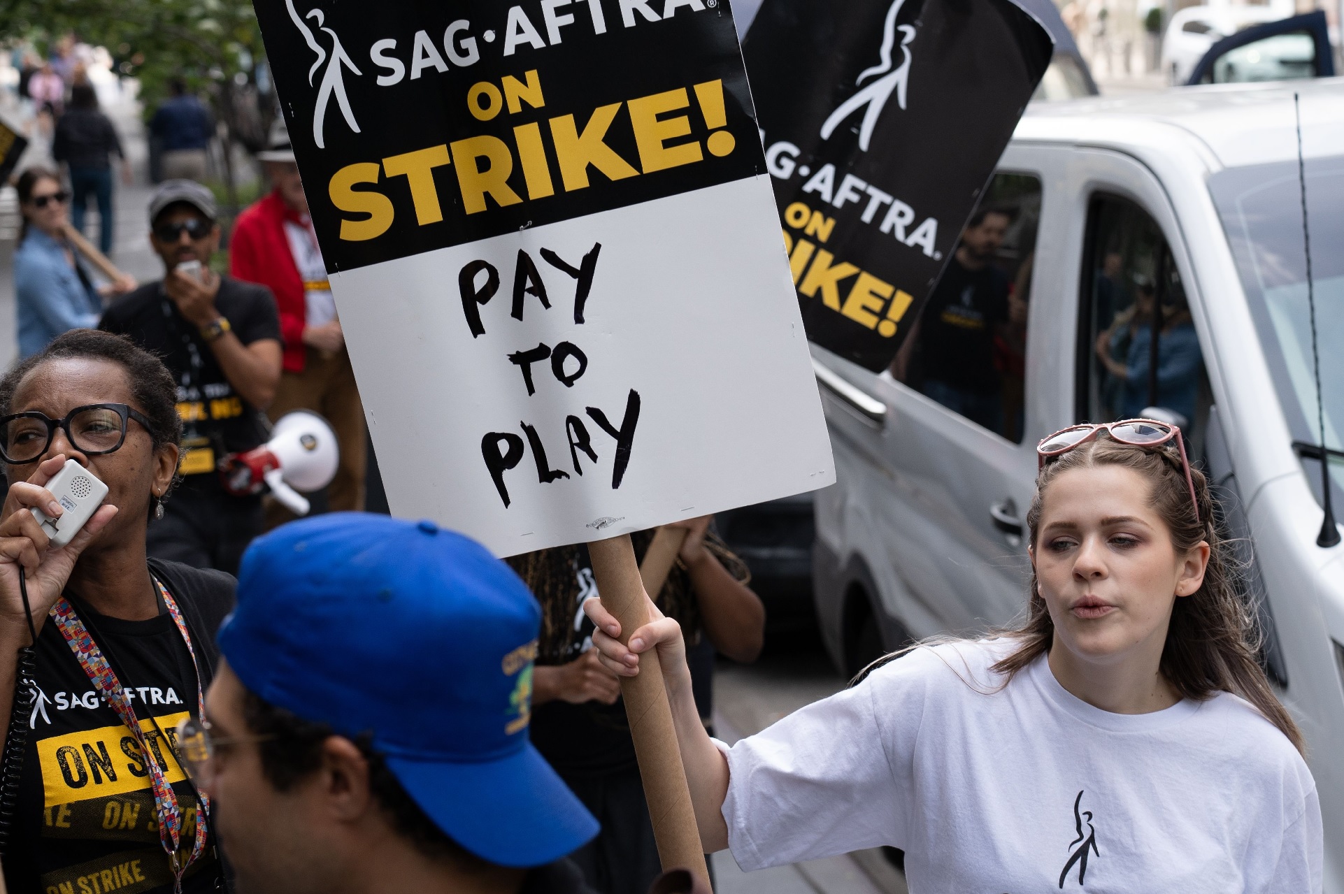 SAG-AFTRA is de vakbond waarbij zo’n 160.000 televisie- en filmpersoonlijkheden zijn aangesloten. Opnames van veel films en series liggen al enige tijd stil door de schrijvers- en acteursstakingen.