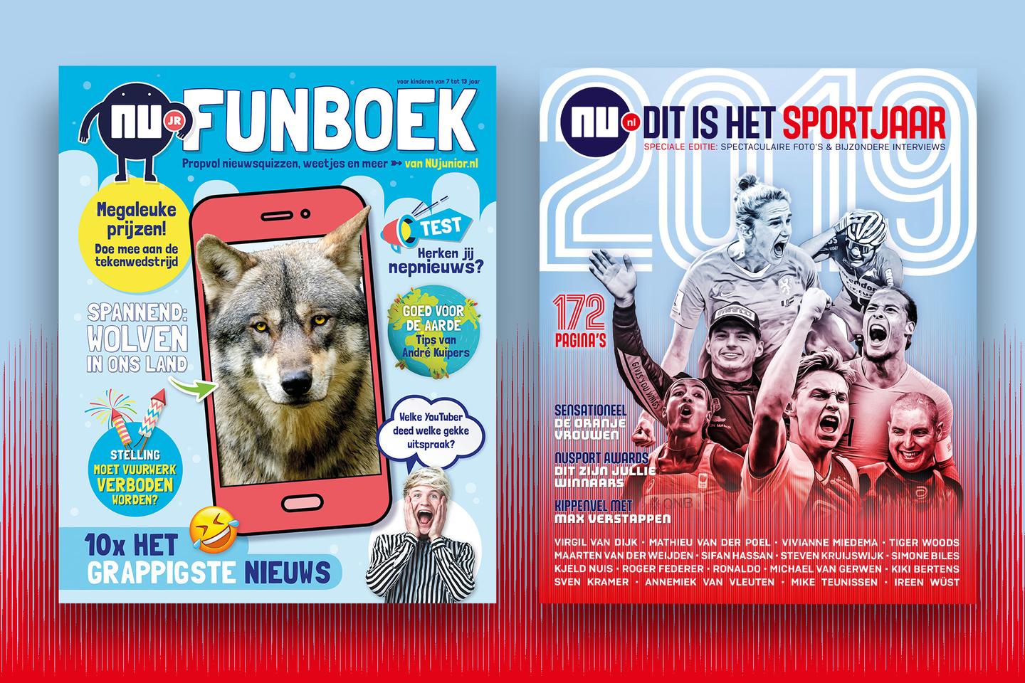 NU.nl verkent de mogelijkheden van print aan het einde van dit jaar met twee specials: het ‘NUjunior Funboek’, een doe-boek voor kinderen tussen 7 en 12 jaar oud, dat hangt aan het nieuwe nieuwsplatform voor kinderen, NUjunior.nl, dat NU.nl half september lanceerde. En ‘Dit is het sportjaar 2019’, een jaarboek gerelateerd aan NUsport.