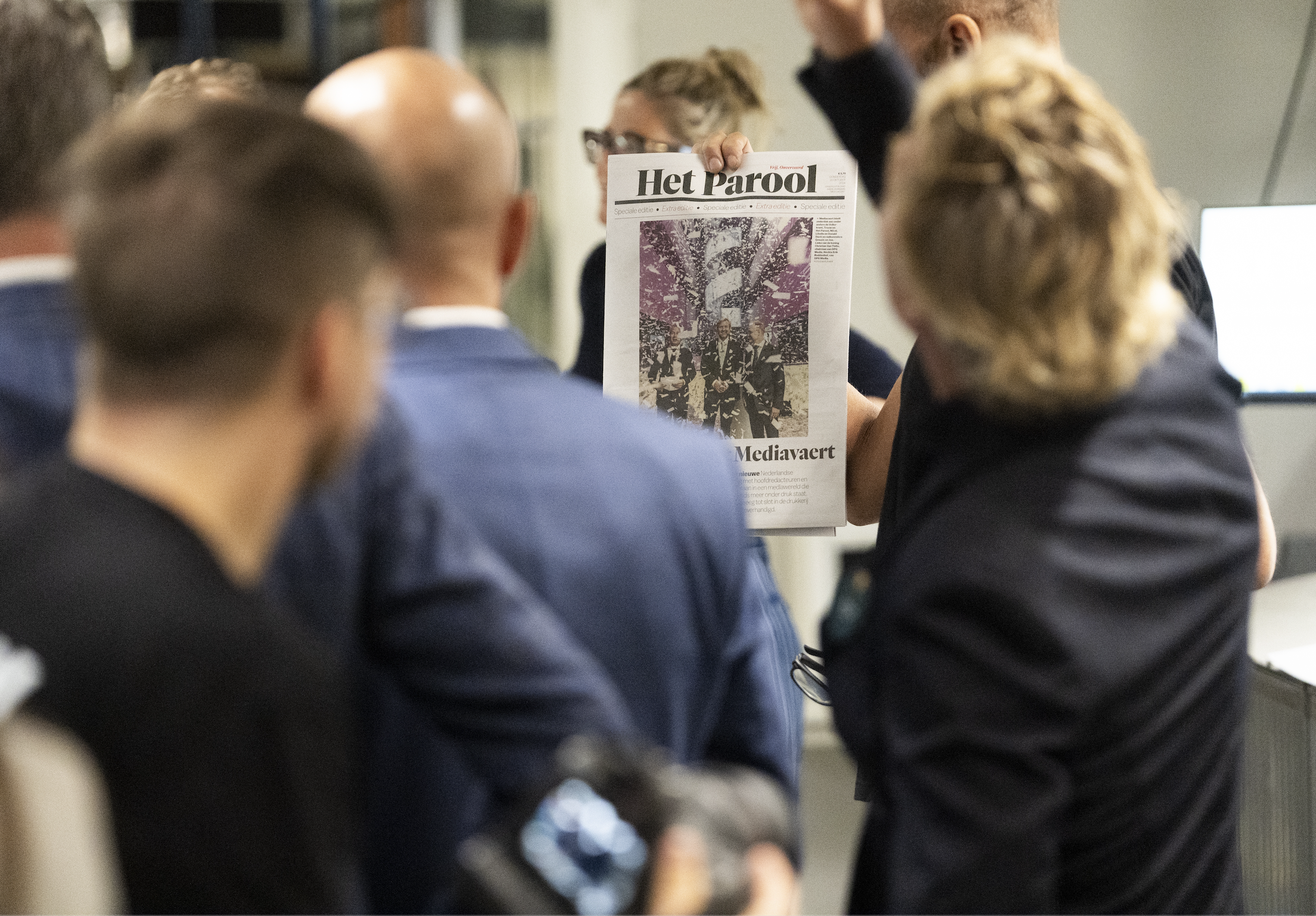 Koning Willem-Alexander tijdens de opening van Mediavaert, het Nederlandse hoofdkantoor van DPG Media in Amsterdam. - © Jeroen Jumelet/ANP