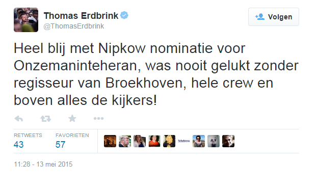 De programma's Onze man in Teheran, Hollands Hoop en het Sinterklaasjournaal zijn genomineerd voor de Zilveren Nipkowschijf. Dat is de prijs van tv-critici voor het beste Nederlandse televisieprogramma.