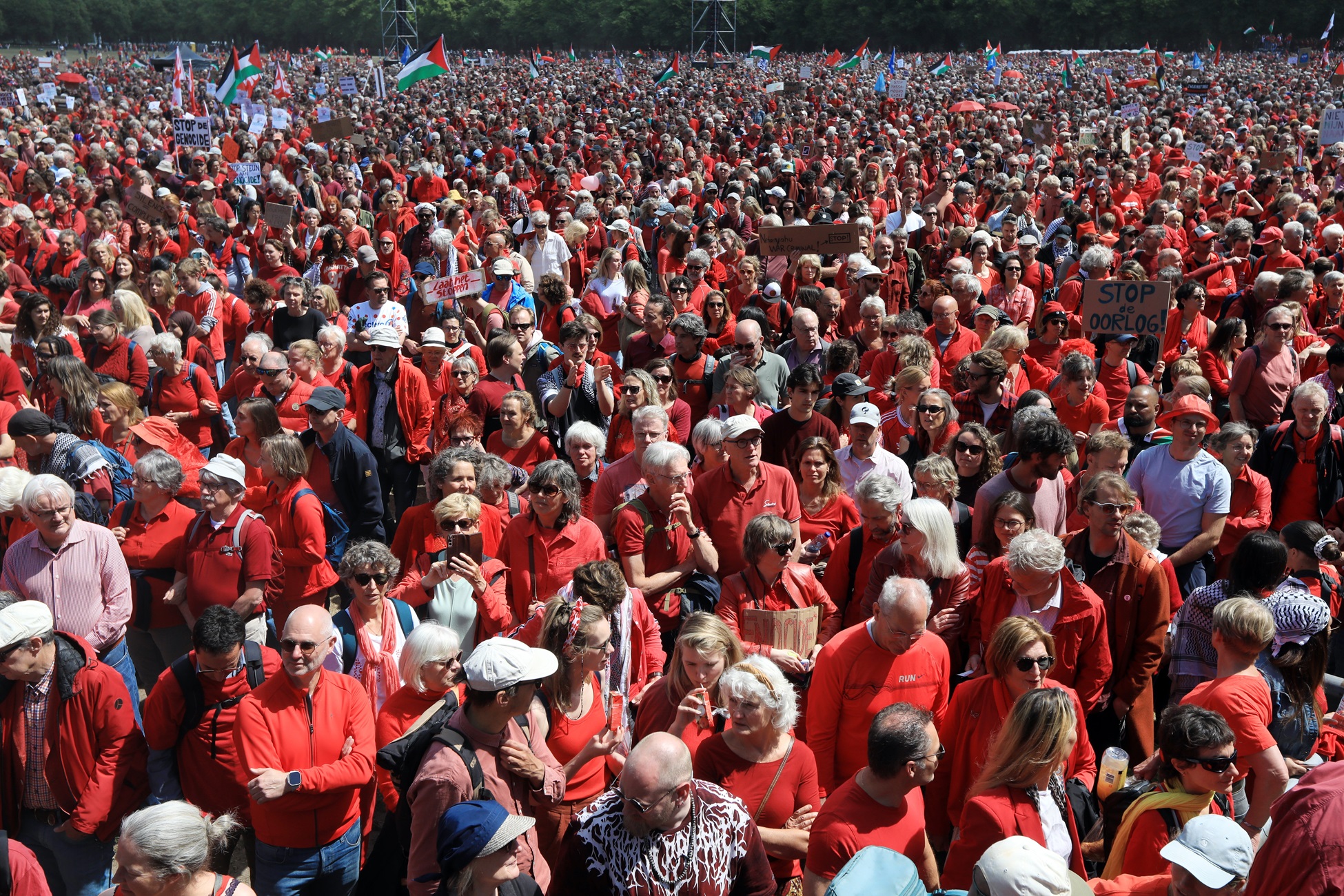 Op 18 mei 2025 liep de NVJ mee in wat later bleek de grootste demonstratie in Nederland te zijn geweest in twintig jaar. Zeker honderdduizend mensen verzamelden zich op het Malieveld in Den Haag, waarna ze in een protestmars richting het Vredespaleis liepen, en weer terug. Dat was om een rode lijn te trekken tegenover het Israëlische, genocidale geweld in Gaza. Het deed mij ontzettend goed dat wij er als beroepsorganisatie bij waren.