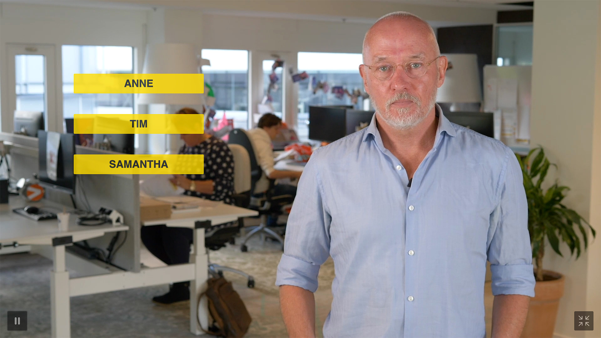 Projectleider Peter ter Velde laat zien hoe eenvoudig informatie bij elkaar te sprokkelen is via internet. De video presenteert je daarna met enkele bedreigingsscenario’s en vragen, waarna de video een andere route neem of adviezen geeft op basis van antwoorden.