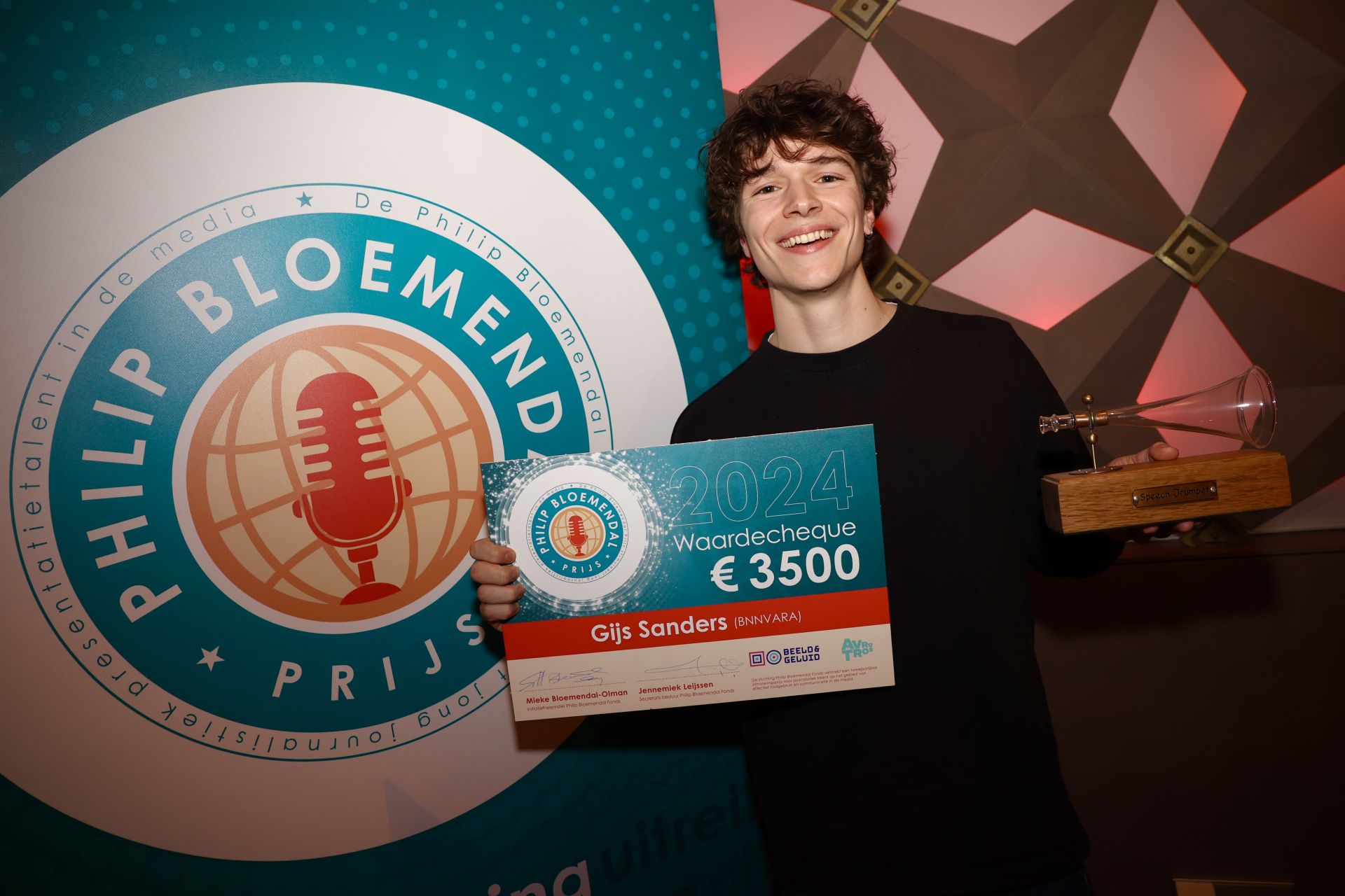 De prijs werd vandaag voor de twaalfde keer uitgereikt live bij Beeld & Geluid. Sanders ontving een cheque ter waarde van 3.500 euro uit handen van Stephan Komduur, de winnaar van 2022. Dit bedrag kan hij besteden aan een opleiding om zich verder te professionaliseren in het vakgebied.