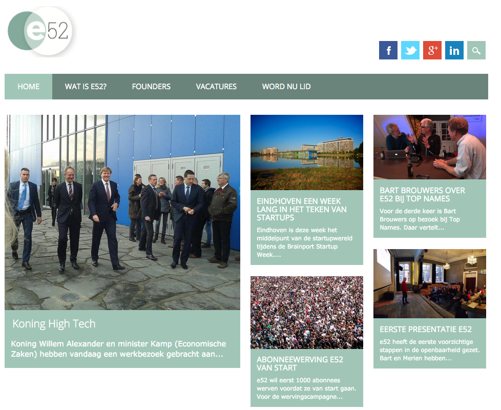 Deze week start in Eindhoven het nieuwe regionale nieuwsplatform e52, een initaitief van Merien ten Houten (onder meer oprichter NU.nl) en voormalig Spits en Dichtbij-hoofdredacteur Bart Brouwers. Volgens Ten Houten en Brouwers worden mensen tussen 20 en 45 jaar momenteel slecht bediend door regionale media, iets dat e52 moet veranderen. Het platform moet wekelijks een papieren editie opleveren en dagelijks online nieuws brengen. Vier journalisten moeten e52 draaiende houden. Het platform gaat pas echt van start als er duizend abonnees geworven zijn. Komende lente wordt het eerste papieren nummer verwacht, meldt de Eindhovense stadsomroep Studio040.