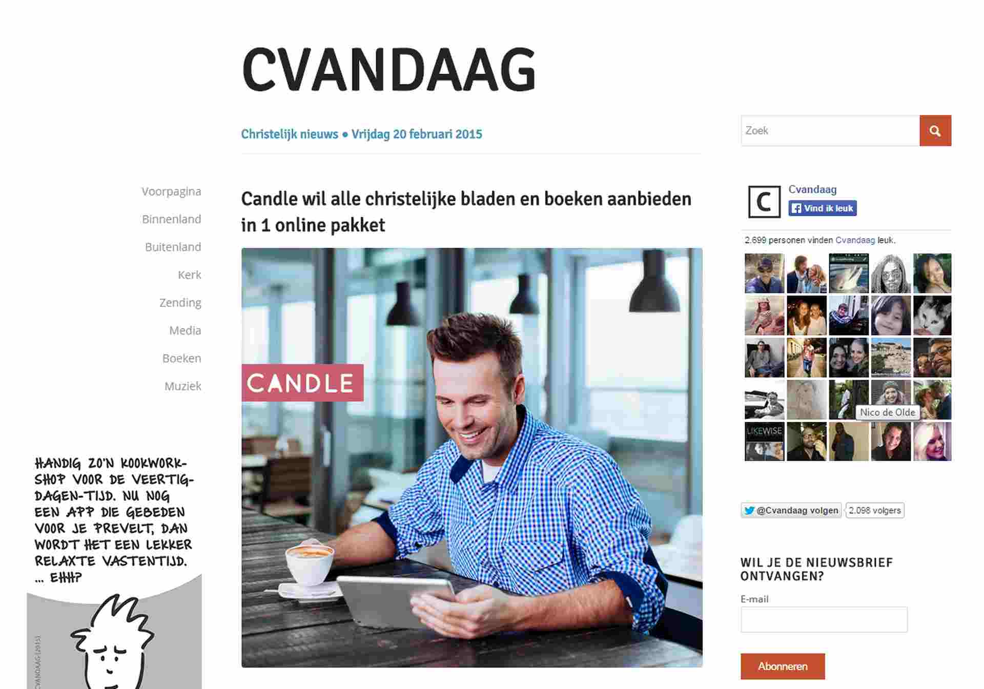 Erdee Media Groep (EMG) heeft plannen om een eigen variant te maken op het populaire Blendle met losse artikelen uit verschillende christelijke kranten, tijdschriften en kerkelijke bladen. Ook de makers van de christelijke websites Cvandaag en Jobfish zijn daar mee bezig. Die laatste hebben al een naam voor hun plan: Candle. Abonnees op Candle mogen voor een vast bedrag elke maand 25 artikelen lezen uit 10 christelijke bladen of kranten. Het is de bedoeling dat er een Candle-website en een Candle-app komen. Ook is het mogelijk om elk kwartaal twee digitale christelijke boeken te lezen. EMG verzorgt op dit moment al de archivering en digitale ontsluiting van bladen van ruim twintig deelnemers aan www.digibron.nl. Deze deelnemers, waaronder het RD, Terdege, De Saambinder, De Wachter Sions, de JBGG, De Waarheidsvriend, Protestants Nederland, de SGP en De Wekker, worden binnenkort uitgenodigd voor overleg over een nieuw platform waarop ook de actuele uitgaven van deze partijen op artikelbasis tegen betaling worden aangeboden. Meer bij het Reformatorisch Dagblad