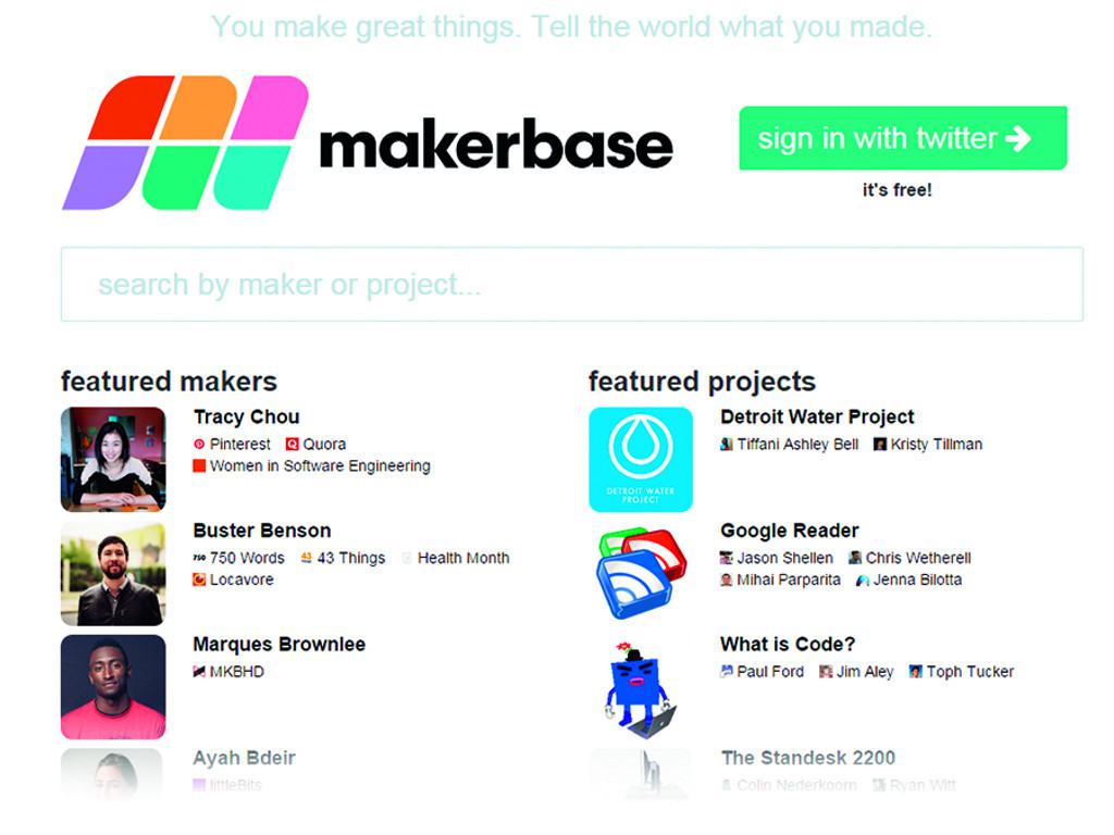 Je kunt daar werk en projecten (sites, podcasts) promoten en eenvoudig verbinden met mensen in je eigen vakgebied. Het project Makerbase is nog maar kort in de lucht, dus het aanbod is nog beperkt. De bedenkers hopen dat de mensen achter interessante online projecten zo snel zijn terug te vinden. In een blogpost leggen ze uit [tek.st/85] hoe Makerbase afwijkt van Wikipedia of bijvoorbeeld filmdatabase IDMB.