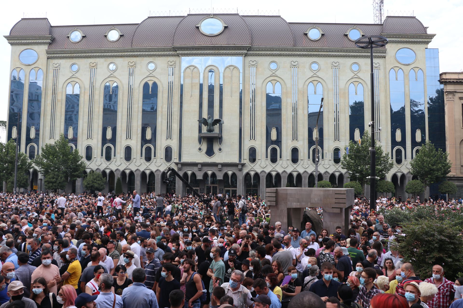De dag na de bestorming verzamelden duizenden demonstranten tegen het homofobe geweld zich bij het Georgische parlementsgebouw. En afgelopen zondag dus ook. Ze houden de regering verantwoordelijk voor het anti-homogeweld en eisen het vertrek van premier Garibasjvili en zijn minister van Binnenlandse Zaken. Meer bij de NOS I / II