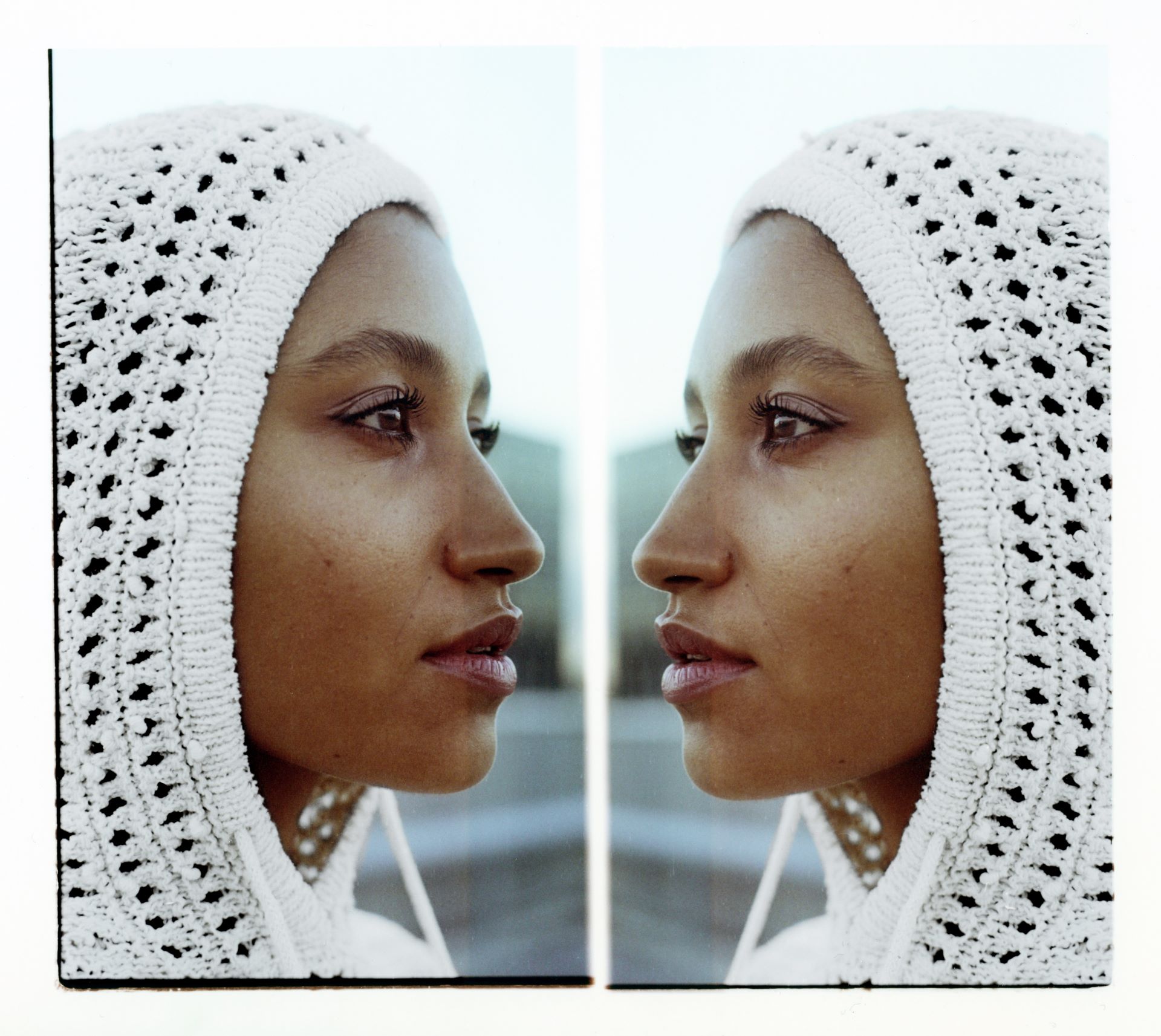 ‘Fotografie is voor mij niet alleen een weergave van wat ik zie. Ik vind het mooi om verschillende dingen te doen met beeld door bijvoorbeeld te spelen met technieken. In mijn Rotterdamse appartement heb ik een kamer ingericht als doka en daar zit ik graag. Ik wilde weten wat het effect zou zijn als ik de foto van DJ Niiomi zou spiegelen. Dus heb ik het papier na de eerste exposure in mijn doka teruggedaan in het donker, het negatief omgedraaid en nog een keer afgedrukt. Daardoor is het alsof ze naar zichzelf kijkt, dat vind ik heel krachtig. Door die techniek komt ze voor mij nog meer tot leven.’