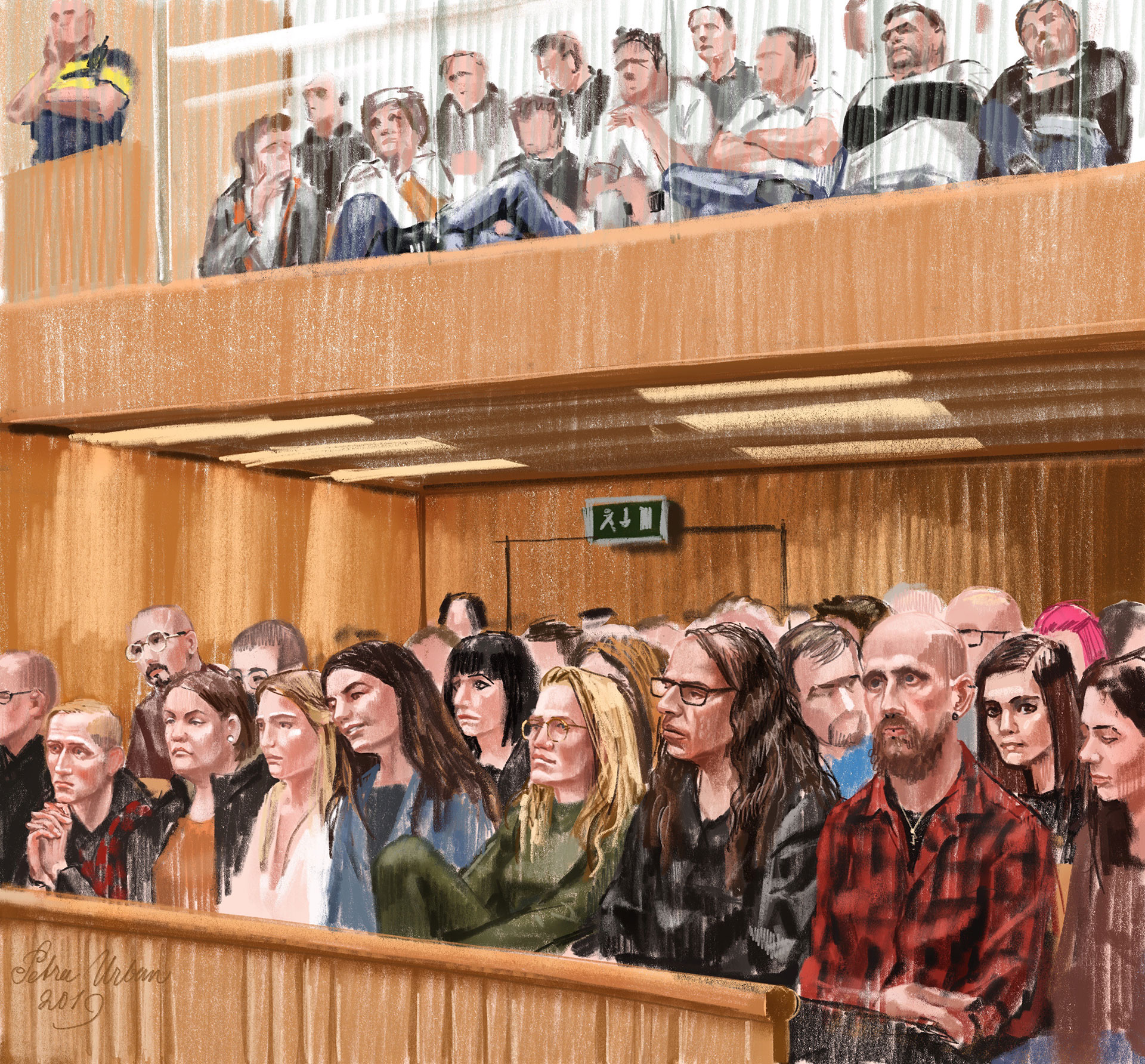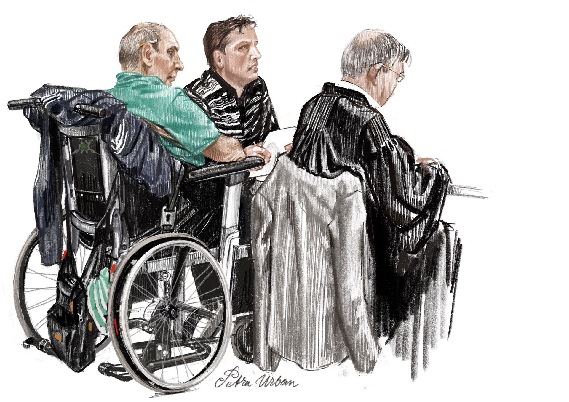 Haar tekeningen roepen bewondering en vrees op, zo realistisch zijn ze. Petra Urban zegt een interpretatie te geven van wat ze in de rechtbank ziet. ‘Ik teken geen monsters maar mensen.’