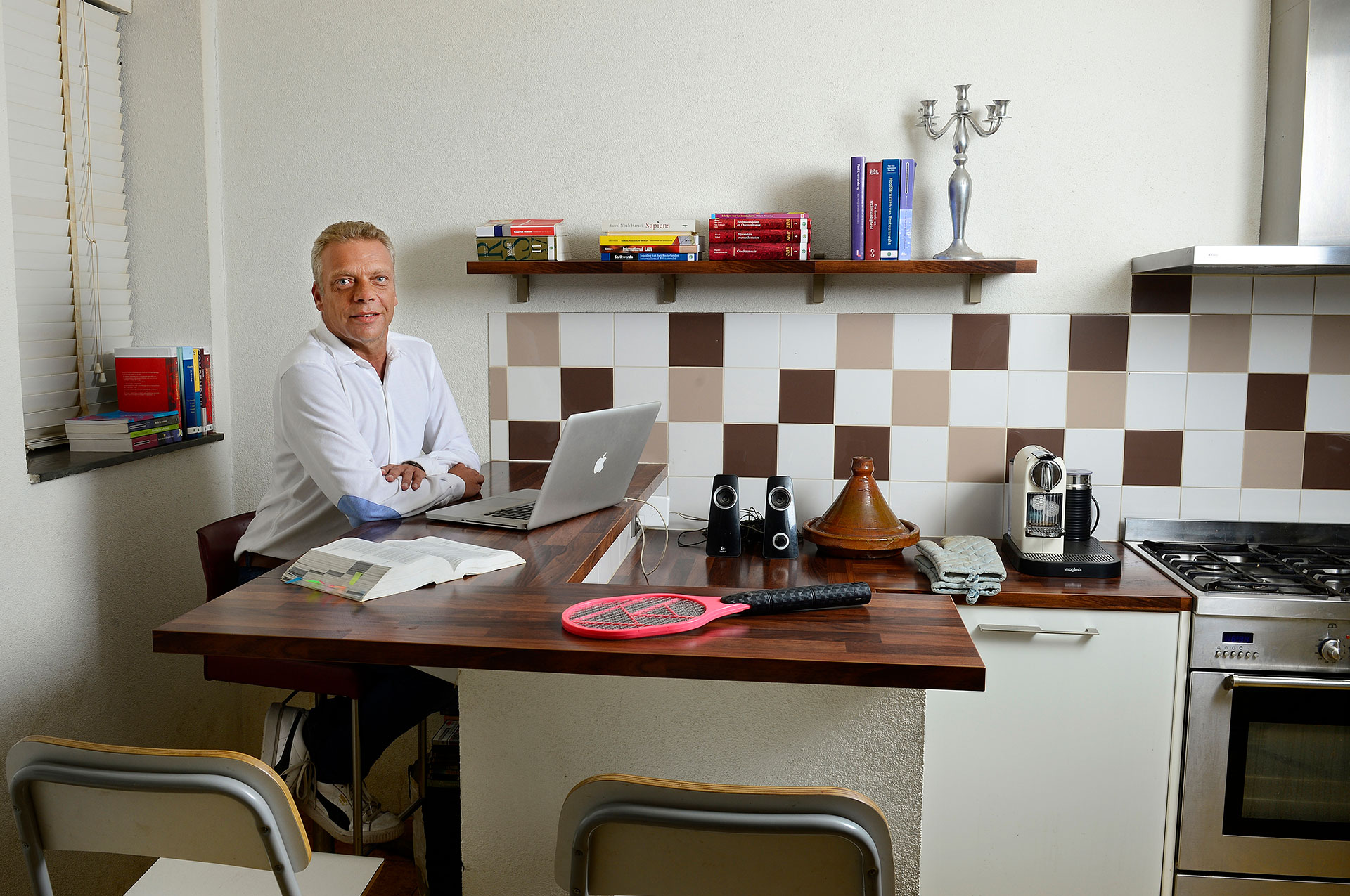 Vos had alles al gezien, alles meegemaakt, het was tijd voor iets anders. ‘Ik was uitgekeken op de fotojournalistiek, mijn nieuwsgierigheid naar andere terreinen was groter. Al snel meldde ik me aan voor de studie rechten.’ Vanaf de herfst van 2013 zagen zijn zoons hem iedere dag. Altijd als ze thuiskwamen, zat papa achter een muur van boeken.