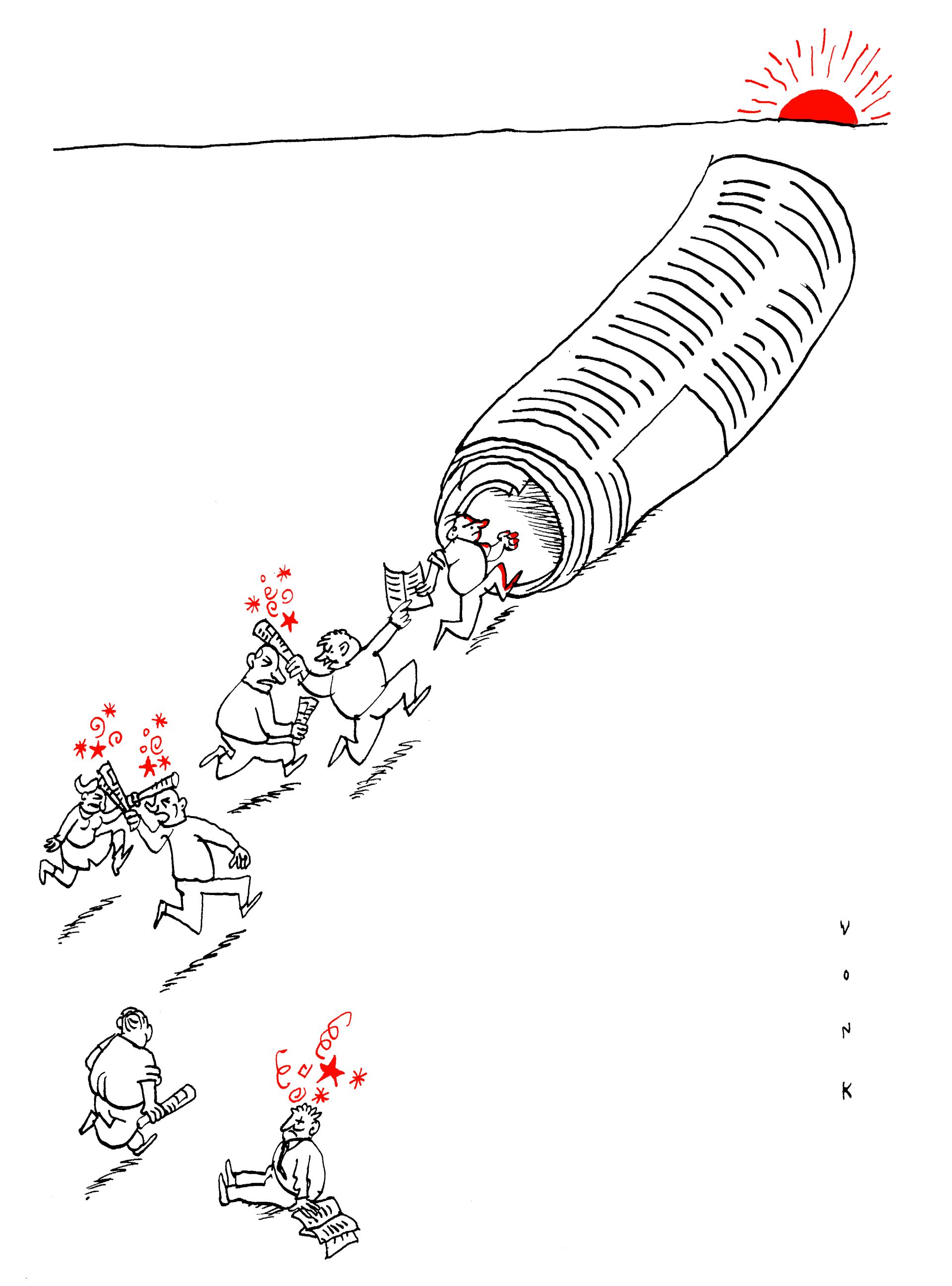 Bij de NVJ is Arthur Maandag, tijdelijk als secretaris verantwoordelijk voor het TMG/HMC-dossier, helder in zijn mening: ‘Wat de directie nu wil, kan niet, het mag niet en dus gebeurt het niet. Voor welk probleem is dit een oplossing? Het ligt principieel, want het gaat om respect voor het redactiestatuut. En nou net op zo’n punt kun je geen compromissen sluiten.’