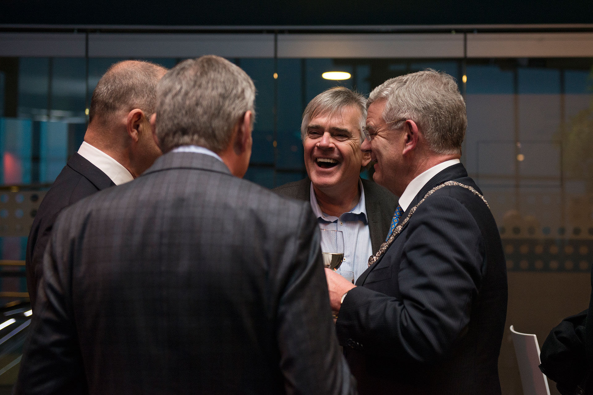 Op de borrel, waar we graag beeldend verslag van hadden willen doen, werden niet NOS-fotografen geweigerd in verband met, ja in verband met wát eigenlijk? ’Van ons had het best gekund’, fluisterde de hofdame. ’Dit beslist de NOS zelf.’