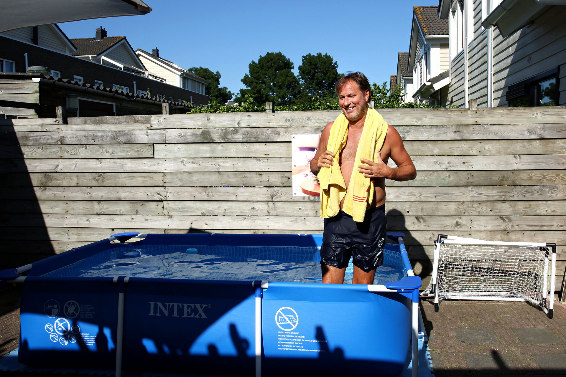 ‘Ha die Frits! De wereld verbeteren en van het leven genieten. Het kan allebei!’ Een schaterlach klinkt vanuit de achtertuin. Sander de Kramer paradeert er als de koning van Terbregge, met druipend bovenlijf en een gele handdoek om zijn middel. Een groot, plastic kinderzwembad vult het stenen plaatsje. Een jongetje slaat met zijn handen op het water en proest van plezier. Pappa heeft net zijn eerste duik genomen. Mamma Wendy trekt binnen verhuisdozen open, op zoek naar droog ondergoed.