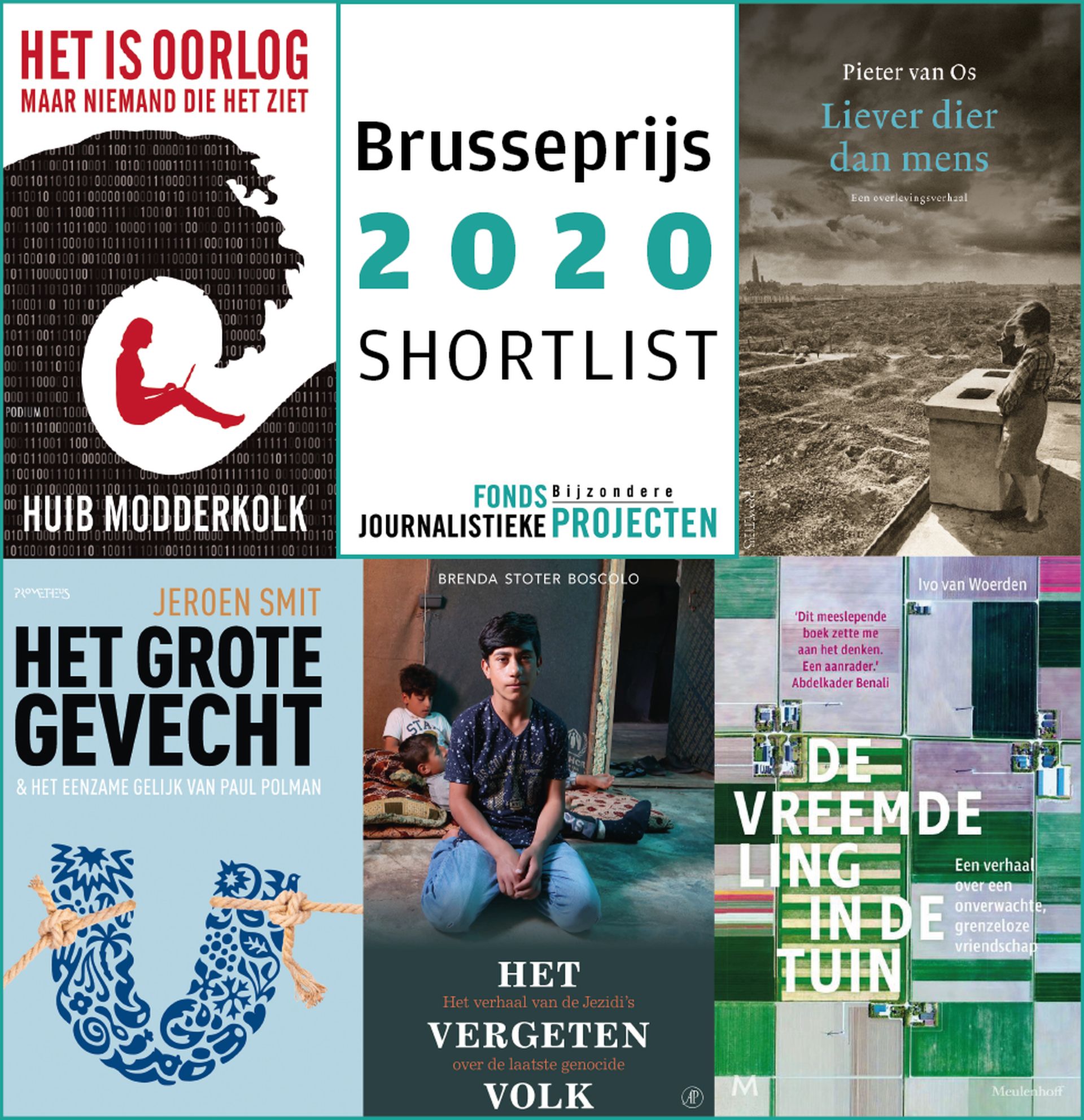 Huib Modderkolk, Pieter van Os, Jeroen Smit, Brenda Stoter Boscolo en Ivo van Woerden maken kans op de Brusseprijs 2020. Nadat eerder al de longlist was gepubliceerd heeft de jury nu bekendgemaakt dat deze vijf journalisten op de shortlist staan van het beste journalistieke boek van het afgelopen jaar. Laatste wijziging: 8 mei 2020, 13:12
