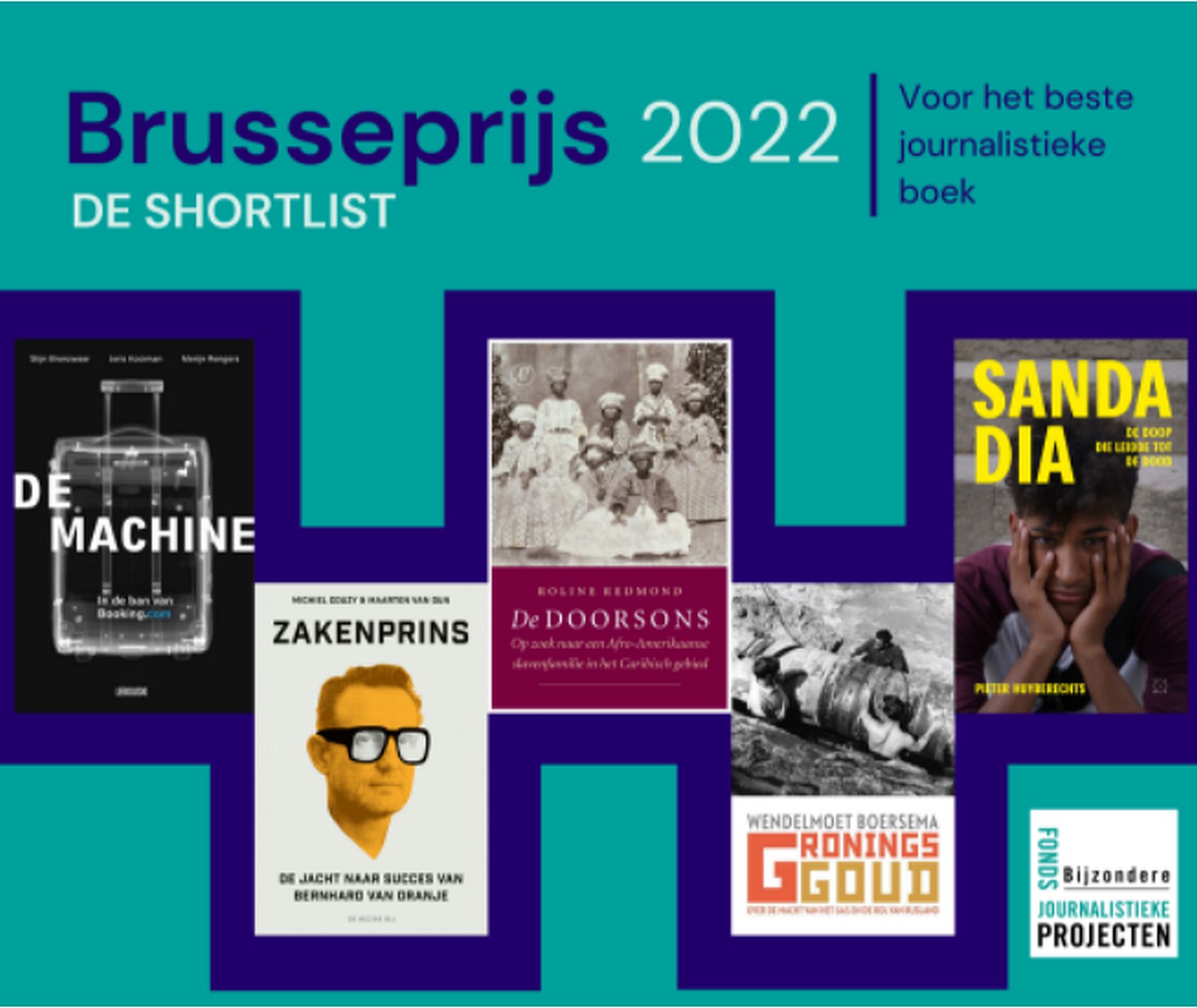 De jury heeft vijf titels geselecteerd voor de shortlist van de Brusseprijs 2022, de prijs voor het beste Nederlandstalige journalistieke boek.
