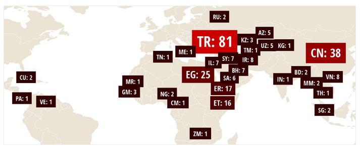 Van de journalisten die CPJ in Turkije meetelt is onomstotelijk bewezen dat hun arrestatie met hun journalistieke werk samenhangt. Er zitten dus mogelijk nog meer journalisten vast, waar zo’n link vooralsnog ontbreekt.
