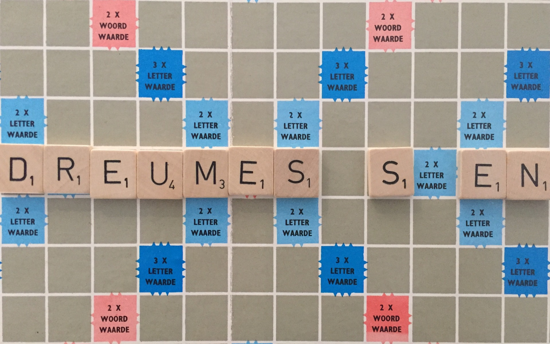 ‘De dreumesen zaten te hannesen met perziken.’ Woorden die eindigen op -es of -ik (zonder klemtoon), krijgen in het meervoud geen verdubbeling van de slotmedeklinker: dreumesen, bajesen, perziken, slimmeriken, enz. Ook werkwoorden volgen dit patroon: hannesen, pilatesen, prediken, punniken, enz.