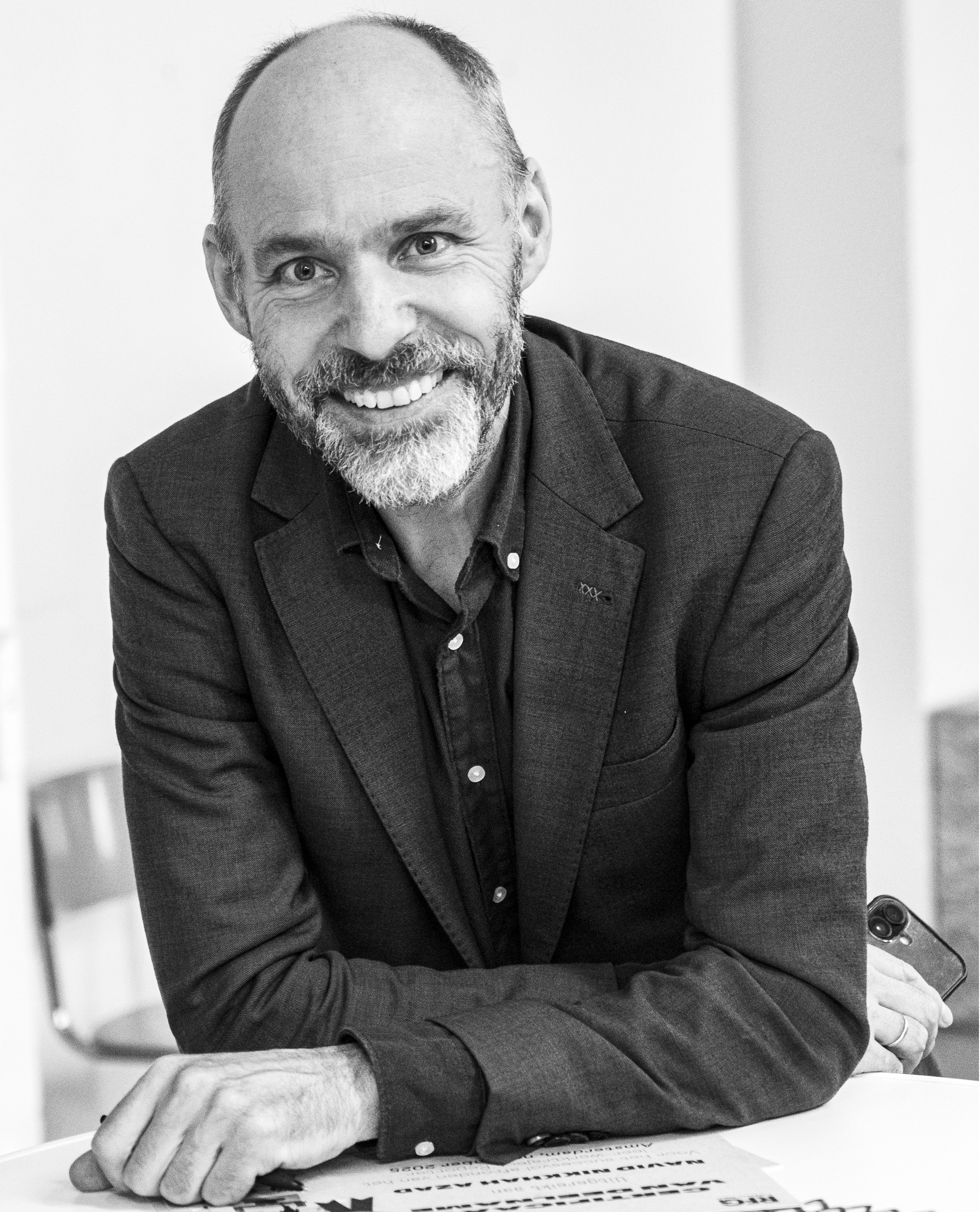 ‘Loop maar even mee’, zegt Thomas Bruning (55), op weg naar de koffiemachine onderin het statige pand van de NVJ, vlakbij het Amsterdamse Museumplein. ‘Ik voel me altijd genoodzaakt om bezoekers meteen te vertellen dat we dit pand ooit voor 600.000 gulden konden kopen’, zegt hij, terwijl hij de machine bedient. ‘Anders denken journalisten wellicht: oei, gaat ons ledengeld daar iedere maand naartoe? Het valt qua hypotheek dus nogal mee, dankzij die slimme investering van destijds.’