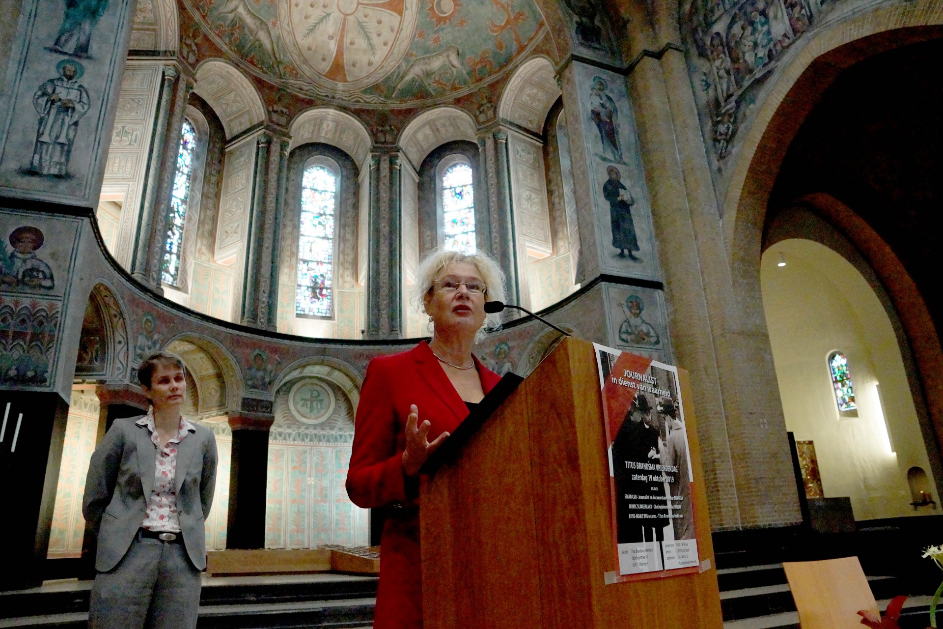 Onder de titel ‘Journalist in dienst van waarheid’ waren zo’n zeventig mensen bijeen om te luisteren naar de zoektocht die Titus Brandsma (Bolsward 1881- Dachau 1942) in zijn tijd maakte. Peter de Ruiter hield een inleiding over de betekenis van Brandsma voor het vrije woord, naar aanleiding van de podcast die hij over hem maakte in de serie Oranjehotel in verzet. In deze serie belicht hij drie verzetsmensen die ondanks hun gevangenneming blijven strijden tegen onrecht.