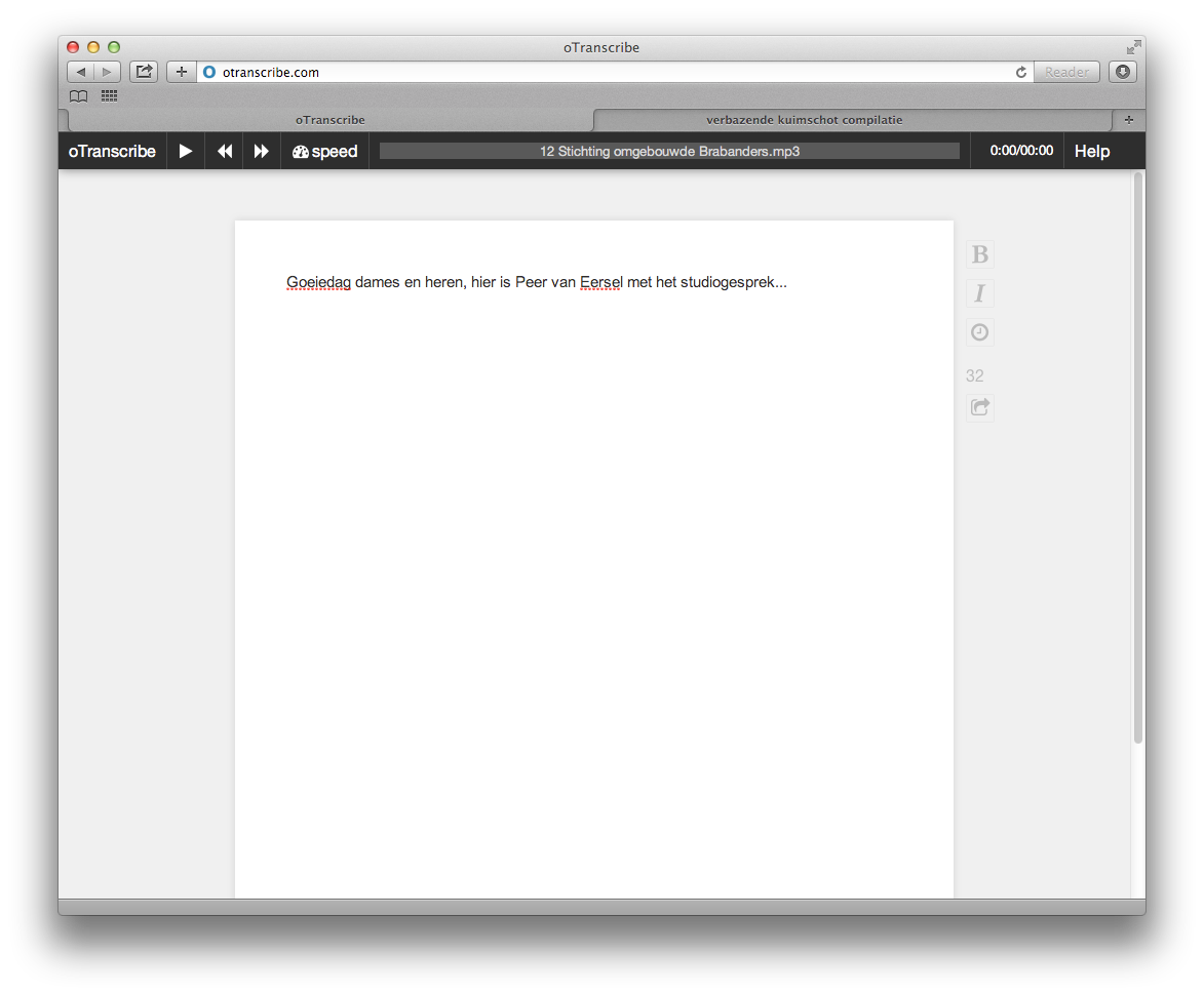 De gratis (!) dienst oTranscribe heeft geprobeerd dit proces zo simpel mogelijk te maken. De site leest je audio-opname (of zelfs videobestand) in en geeft die in je browser als een simpele tijdlijn weer. In hetzelfde browservenster zit ook je tekstverwerker. oTranscribe heeft alle functies om door je audio heen te spoelen en te pauzeren in toets-combinaties gevat. Ook kan de audio worden vertraagd of versneld. Het betekent dat je met oTranscribe het hele interview vanuit één locatie kunt uitwerken, zonder je handen van het toetsenbord te halen. Je audiobestand noch de uitgewerkte tekst wordt extern opgeslagen - alles gebeurt lokaal, en dat is wel zo veilig. oTranscribe maakt de klus er niet leuker op, maar wel een stuk sneller en eenvoudiger. otranscribe.com