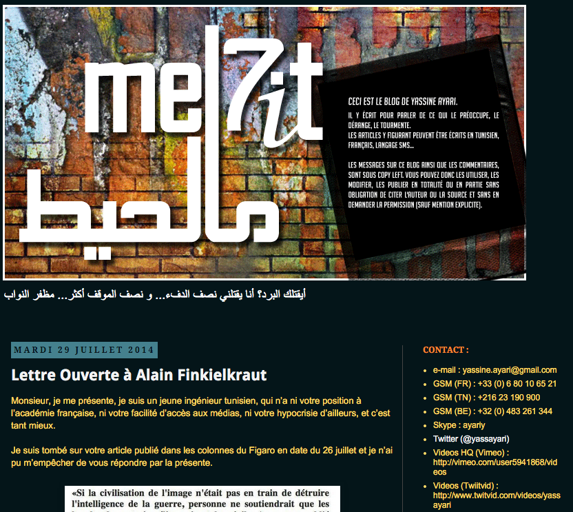 In Tunesië is een blogger tot 1 jaar celstraf veroordeeld voor een aantal kritische berichten op Facebook, waarmee Yassine Ayari volgens de militaire rechtbank het leger heeft beledigd. Amnesty International stelt dat de veroordeling bewijst dat het slecht gesteld is met de persvrijheid in het land. Ook is de Tunesische wetgeving aan herziening toe, aangezien gewone burgers voor een militaire rechtbank terecht kunnen staan. Bij de behandeling werden journalisten geweerd; advocaten die de blogger bijstonden verlieten daarop de rechtzaal in protest. Meer bij Amnesty