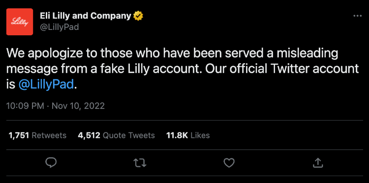 Ondoordachte experimenten met betaalde verificatie hebben verder de betrouwbaarheid van accounts ondergraven, een van Twitters kostbaarste bezittingen. Het blauwe schildje werd normaal alleen na een antecedentenonderzoek toegekend. Grappenmakers konden zich nu voor een schamele 8 dollar uitgeven als geverifieerd account. In enkele gevallen ging de koers fors onderuit, zoals van farmaceutische gigant Eli Lily, toen een nep-account meldde dat hun insuline vanaf nu gratis is.