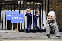 Cameron heeft kritiek te verduren gekregen vanwege de aanstelling van Andy Coulson als zijn woordvoerder. Coulson was oud-hoofdredacteur van News of the World en moest in januari van dit jaar opstappen na heropening van het onderzoek naar de afluisterpraktijken.