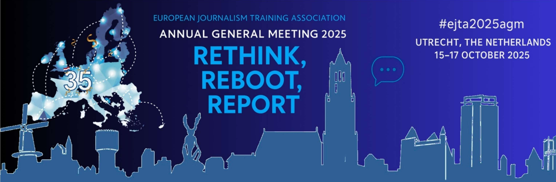 De European Journalism Training Association (EJTA), een netwerk van journalistieke opleidingen uit heel Europa, viert deze week haar 35-jarige jubileum op de School voor Journalistiek in Utrecht. Drie dagen lang komen docenten samen om te praten over de toekomst van het journalistieke onderwijs. Organisator en vicepresident van EJTA Carien Touwen: “We kijken terug, maar vooral ook vooruit.”