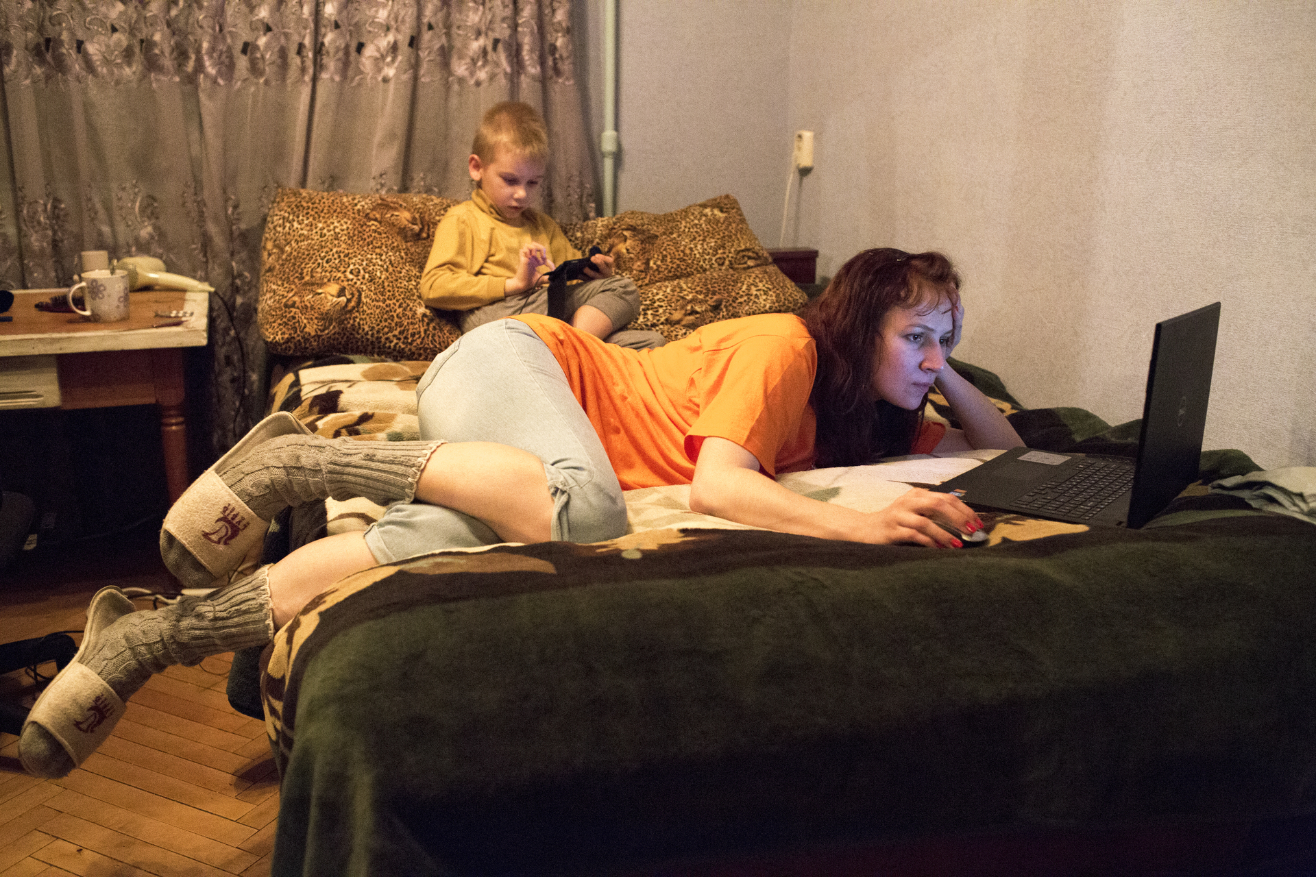 In de gerenoveerde etagewoning dringen van buitenaf vaag straatgeluiden door. Delfshaven is divers, met de daarbij horende dynamiek van te hard optrekkende auto’s of een luide groet naar de overkant. Om de hoek, op de Schiedamseweg, rijdt tram 4 langs een scala van winkeltjes: El Aviva Turkse pizza’s, Woman Smile cosmetica, Lotus Gifts waterpijpen, Western Union Money Transfer, een avondwinkel, slagerij Hassan (sinds 1980), maar ook de Rotterdamse patat-icoon Bram Ladage. Op de stoepen slingeren voetgangers langs uitgestalde groentenkratten en met bruidsjurken geklede paspoppen.