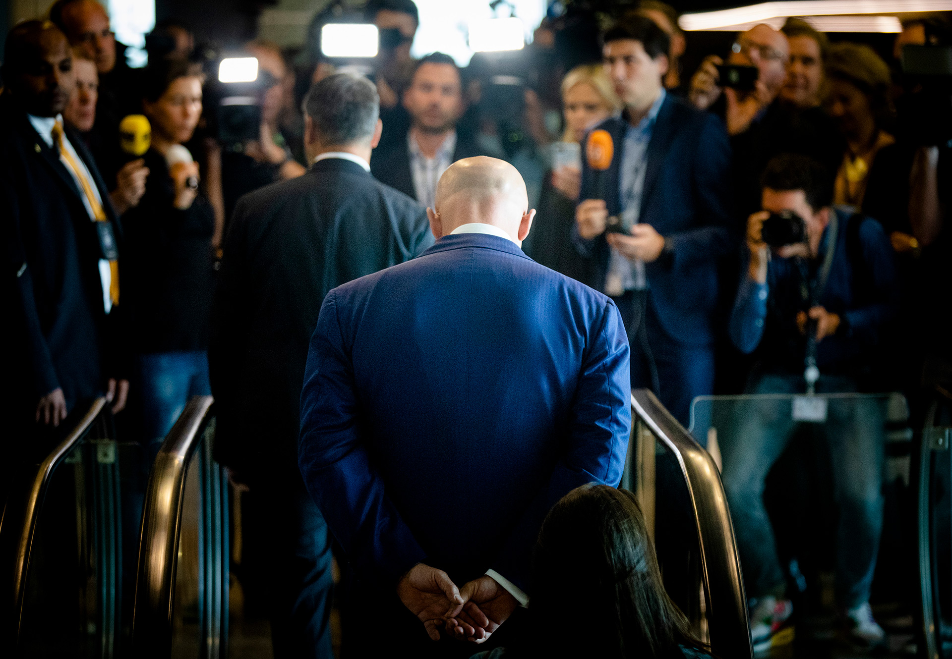 Maat zegt dat de bijzondere foto, van achterop genomen, een gevolg is in grote aantallen aanwezige pers. “Het was gewoon te druk om tussen alle journalisten te staan”, aldus Maat. Meer bij NRC