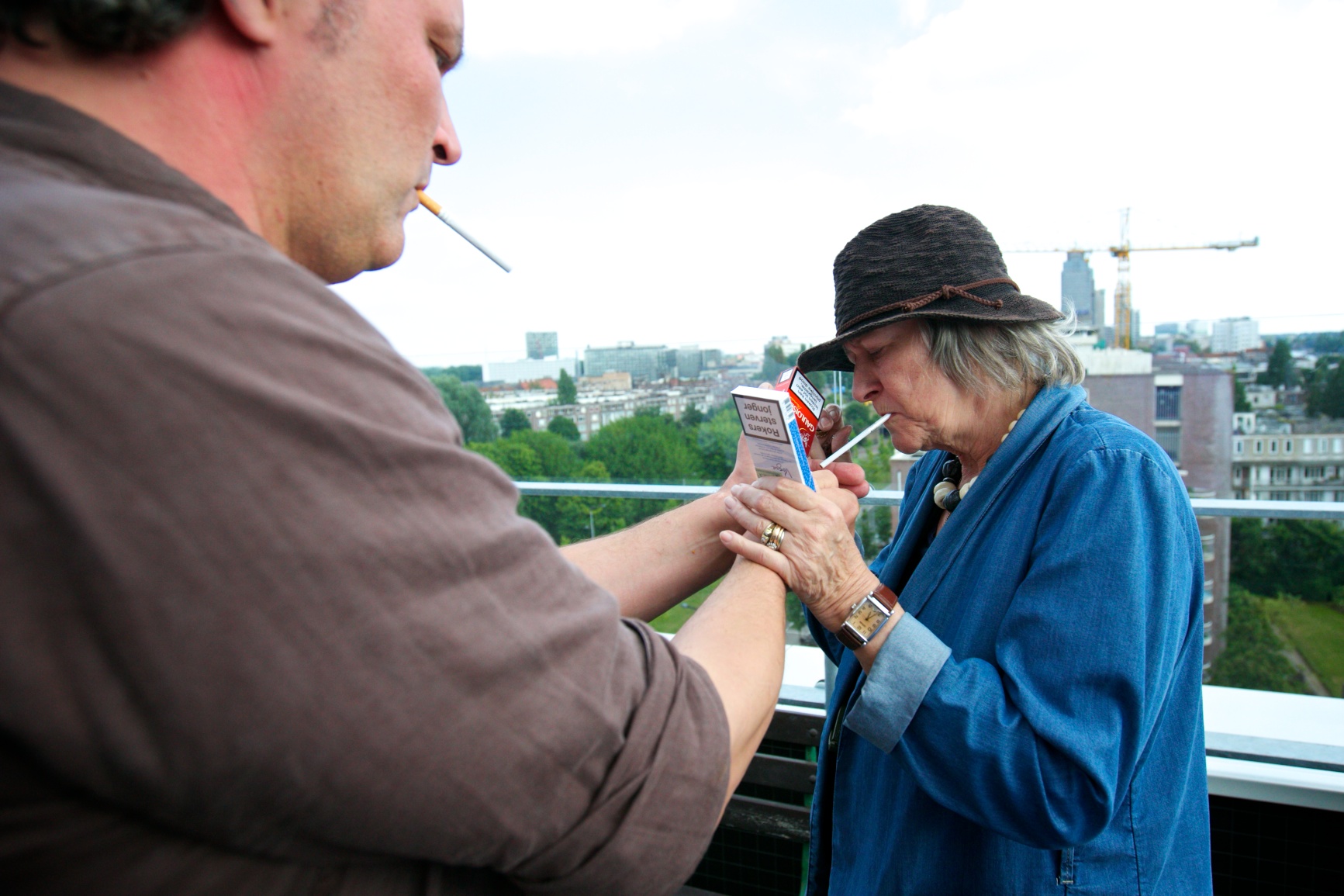 Was het misschien oud-hoofdredacteur Pieter Broertjes zelf die ooit de verhalen verspreidde over huwelijkse ontrouw op de redactie? ‘Over hem gaan weer hele andere verhalen’, zegt Van den Berg met een peuk in haar hand en een glas alcoholica binnen handbereik. Uitkijkend over de Amstel, droomt De Jong: ‘Dat we het allemaal hebben overleefd.’