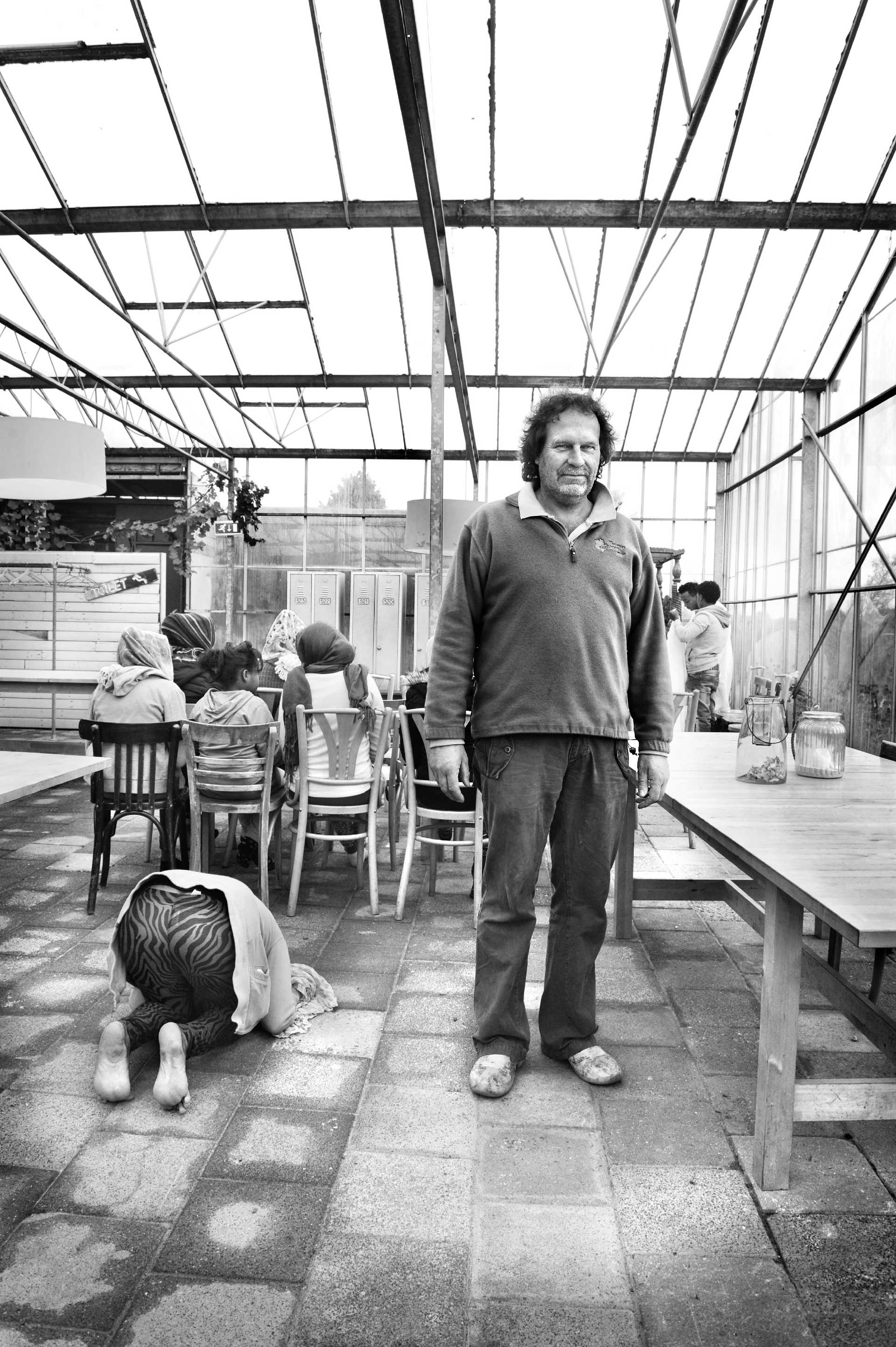 Soms voel ik me een beetje een PR-man, maar dat komt omdat ik overal tussen zit en me met iedereen bemoei. Dat was ook zo toen RTV Drenthe hier een camper neerzette. Dat was vorig jaar, toen de eerste groep asielzoekers arriveerde. RTV Drenthe wilde zich een beetje meten met de grote jongens NOS en RTL. Dus hadden ze bedacht dat ze hier een week lang vanuit een camper zouden berichten over de asielzoekers in Oranje. Super vond ik dat, want zo krijg je een goed beeld van wat er werkelijk speelt hier. Alleen de journalist die dat moest doen, Ronald Oostingh, was nog een behoorlijk onervaren jochie van 22, 23. Ik zei: weet je wat, ik heb het niet zo druk, dus ik ga jou helpen. Iedere dag bedachten we samen wie hij zou kunnen interviewen, we vroegen de vluchtelingen om te komen voetballen zodat hij leuke beelden kon draaien, man het was hartstikke leuk! Mede dankzij die reportages heeft Ronald een mooi contract ergens in Hilversum gekregen. En terecht, want door die uitzendingen kregen de vluchtelingen een gezicht en dat is belangrijk. Als ze een gezicht en een naam krijgen, denken mensen: verrek, dat is een aardige vent, het zou zonde zijn als die weer weggaat uit Nederland.’