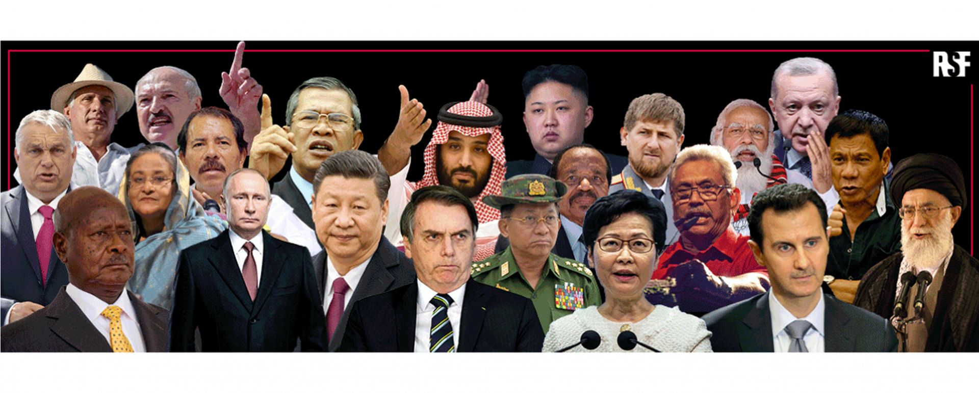 In totaal staan er nu 37 regeringsleiders op de lijst, die persvrijheid met voeten treden door censuur toe te passen, willekeurig journalisten opsluiten of aan te zetten tot geweld tegen hen.