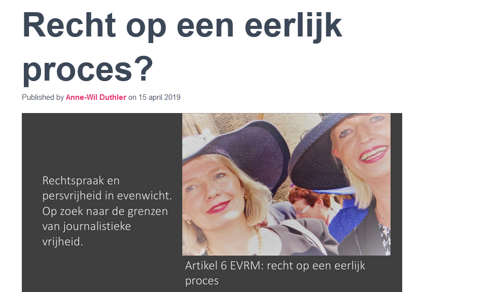 VVD-senator Anne-Wil Duthler wil af van direct openbare rechtspraak. Dat valt op te maken uit een blog van haar hand op de website van haar eigen advocatenkantoor. Volgens Duthler leidt directe openbaarheid er toe dat betrokkenen hun woorden in de rechtszaal wegen omdat ze in de openbaarheid kunnen komen. En dat is onwenselijk. Ook is het bezwaarlijk dat er berichten over een rechtszaak verschijnen nog voordat de rechter een uitspraak heeft gedaan.