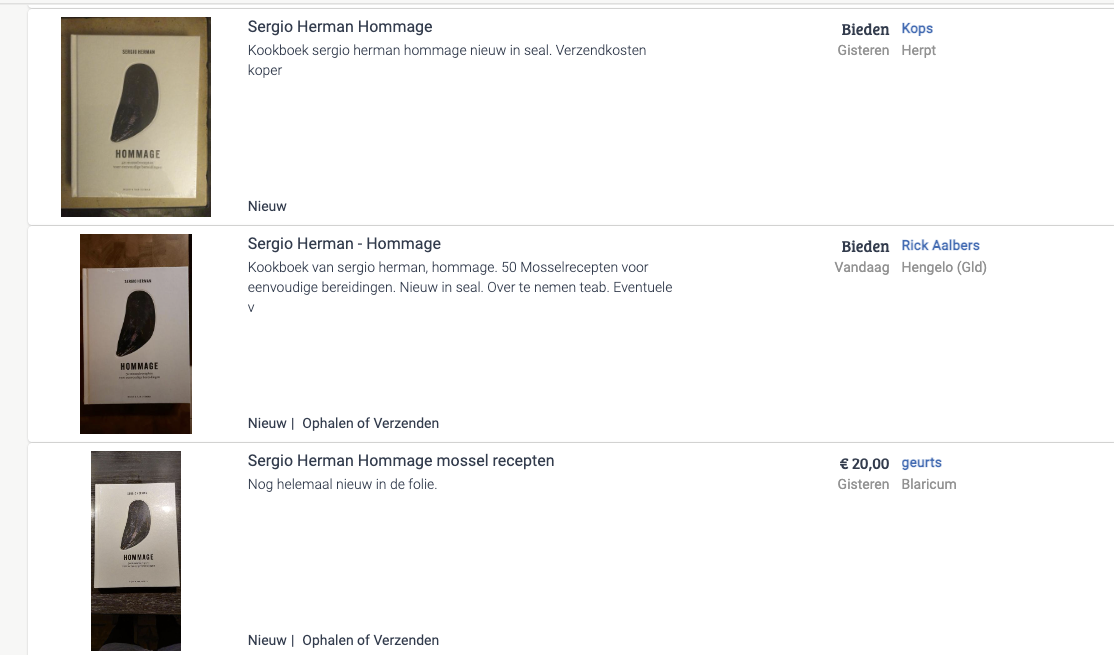 Dan gaan we over naar de kerstpakketten van DPG Media, die veelvoudig gedeeld werden door medewerkers van de uitgever. ‘DPG gaat uit zijn dak’, schrijft een redacteur van de Volkskrant. Er zit onder meer het boek ‘Hommage’ van Sergio Herman over mosselen bij en een paar sokken. Een andere medewerker van DPG signaleert echter iets opvallends: sinds DPG begin deze week is begonnen met het uitdelen van de kerstpakketten, wordt dat boek van Herman opeens massaal aangeboden op Marktplaats. ‘DPG scoort de blunder van het jaar’, schrijft een medewerker. Deze medeweker is eens gaan tellen en turfde zo’n veertig (!) exemplaren van het boek die deze week op Marktplaats werden gezet. Daar blijft het overigens niet bij. Een medewerker van DPG die het boek op Marktplaats zette, ontving kort daarop een berichtje via Marktplaats van een communicatiemedewerker van DPG. ‘Heb je dit boek vandaag als eindejaarsgeschenk ontvangen van je werkgever? Het staat je natuurlijk vrij om dit aan te bieden maar wellicht kun je er iemand blij mee maken in je nabije omgeving of op Marktplaats zonder er geld voor te vragen? Pay it forward zeg maar :)’, staat er in een screenshot in handen van Villamedia.
