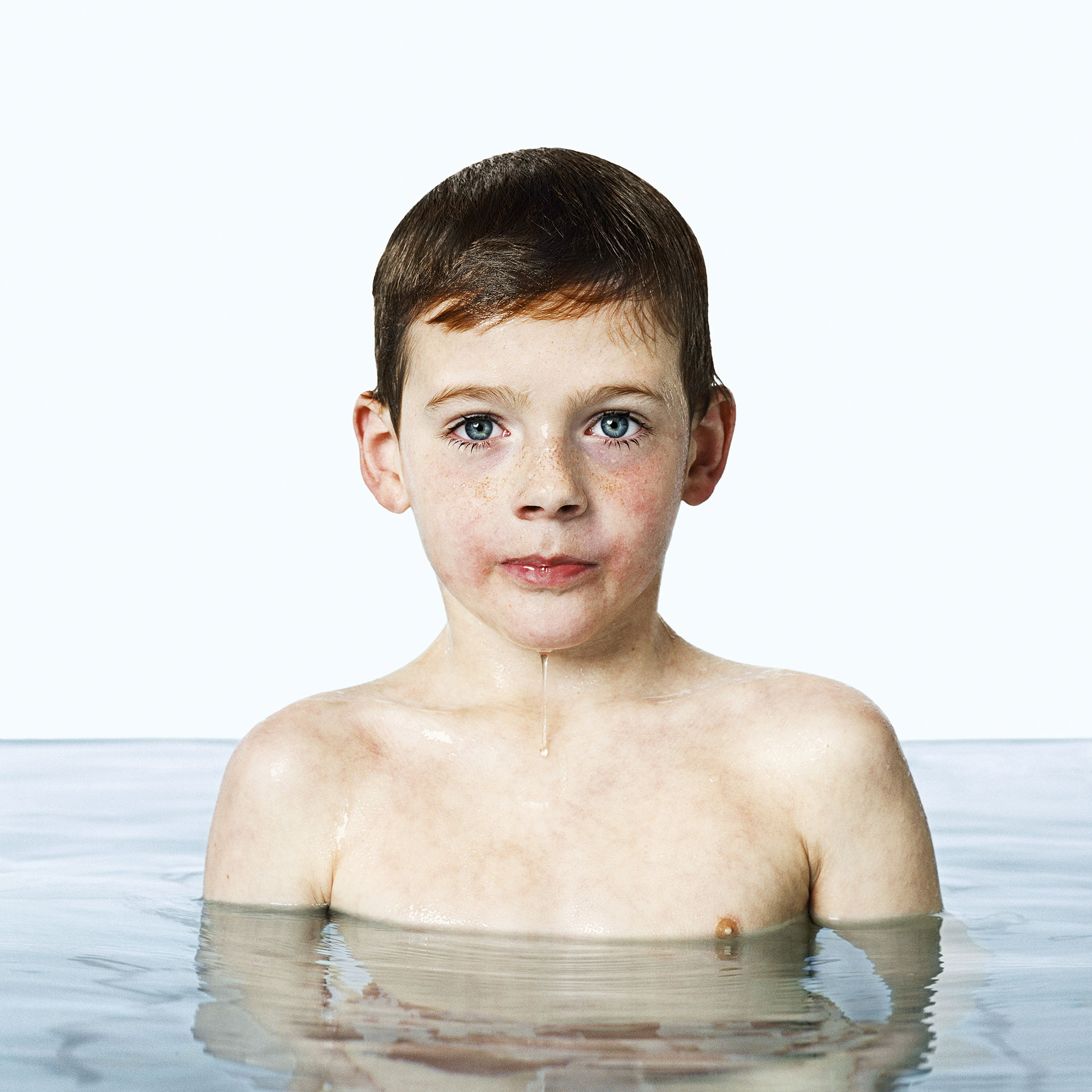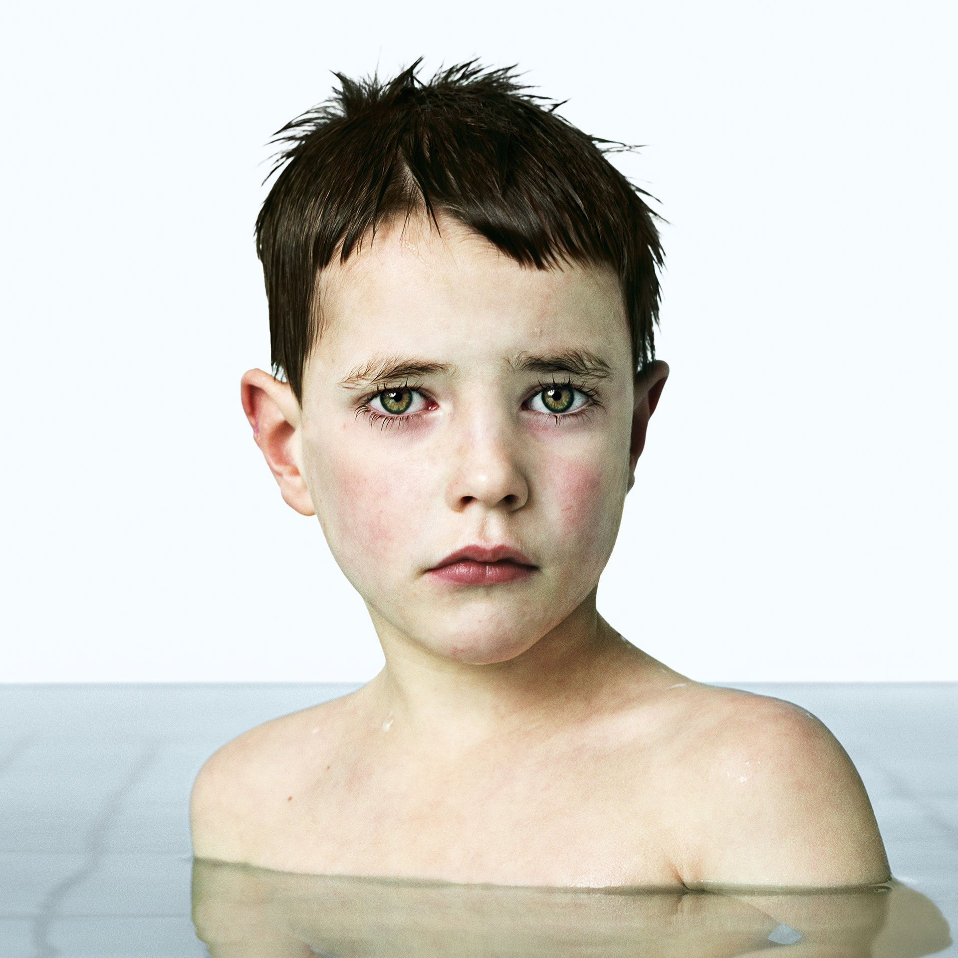 Hij probeerde het later bij twaalfjarigen. Het begon met gesprekjes, op school en in het water van een zwembad. Even praten en dan koppen dicht, van beide kanten. Alles gericht op een mooie esthetische foto van de rimpelloze huid, de natte haren, een druppel in de wimpers. En tijdens het fotograferen kijken wat er gebeurt. De rust die intreedt bij het kind, waarna volgens hem een foto ontstaat die iets vertelt over de persoon. ‘Het zijn geen lachfoto’s, niet geschikt voor het familiealbum. Maar ze laten wel iets los over kinderen in dit tijdsgewricht. Het beeld moet vibreren.’